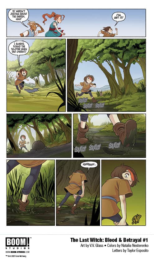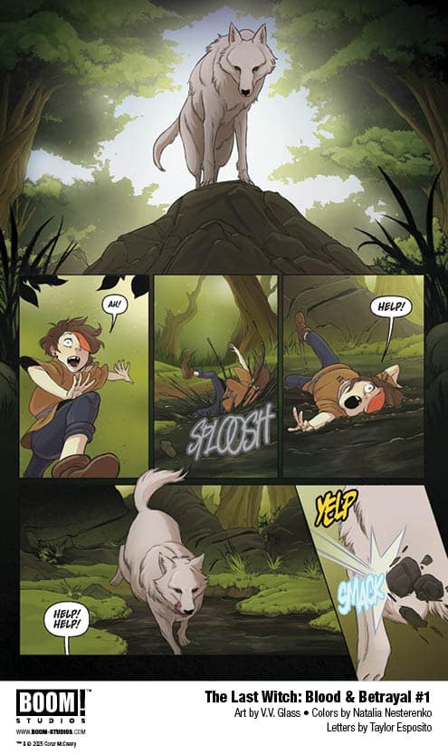BOOM! Studios has revealed a first look at The Last Witch: Blood & Betrayal #1, the premiere issue of the next exciting chapter of The Last Witch from writer Conor McCreery, artist V.V. Glass, colorist Natalia Nesterenko, and letterer Taylor Esposito. The young adult fantasy series returns on June 18, 2025!