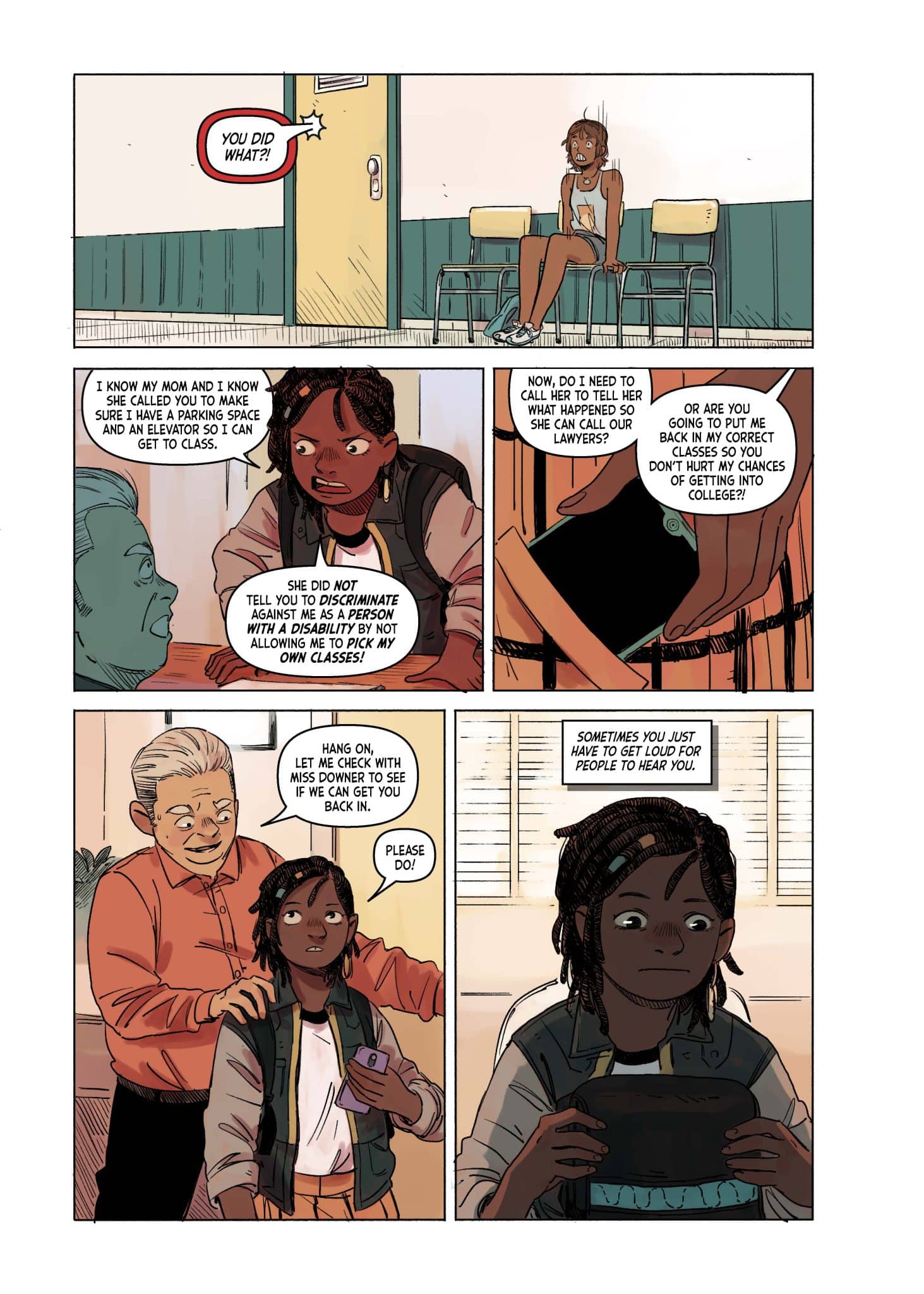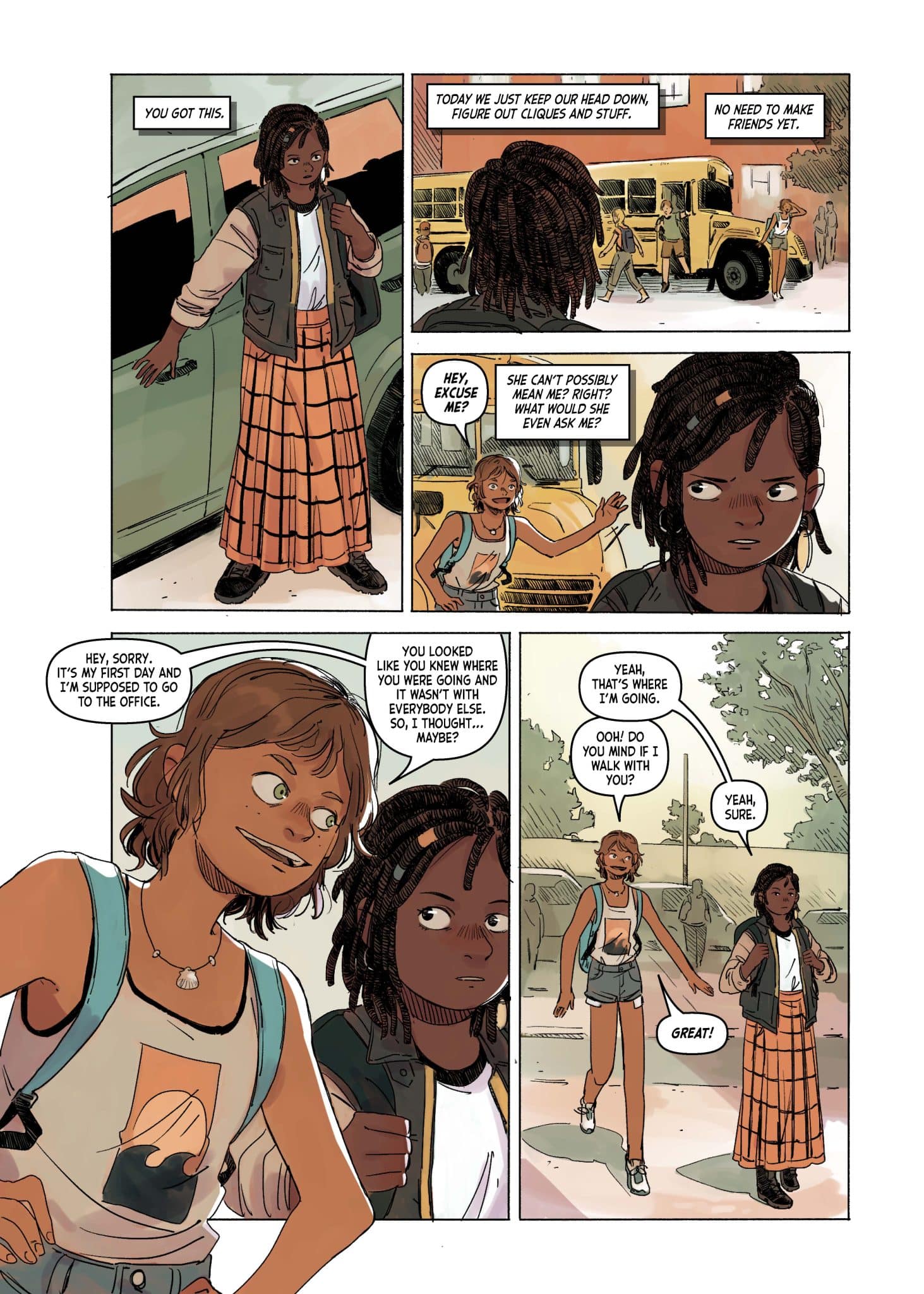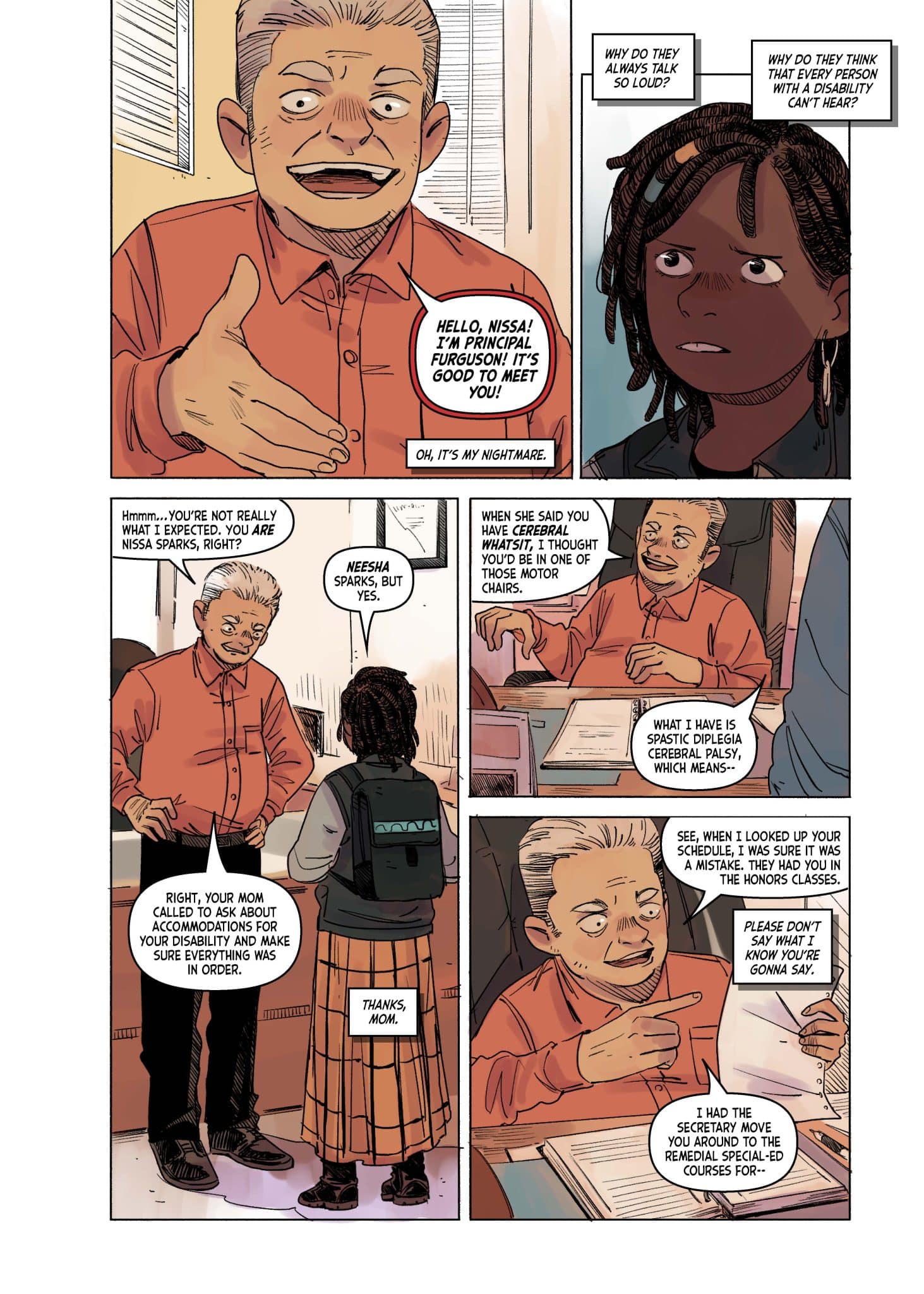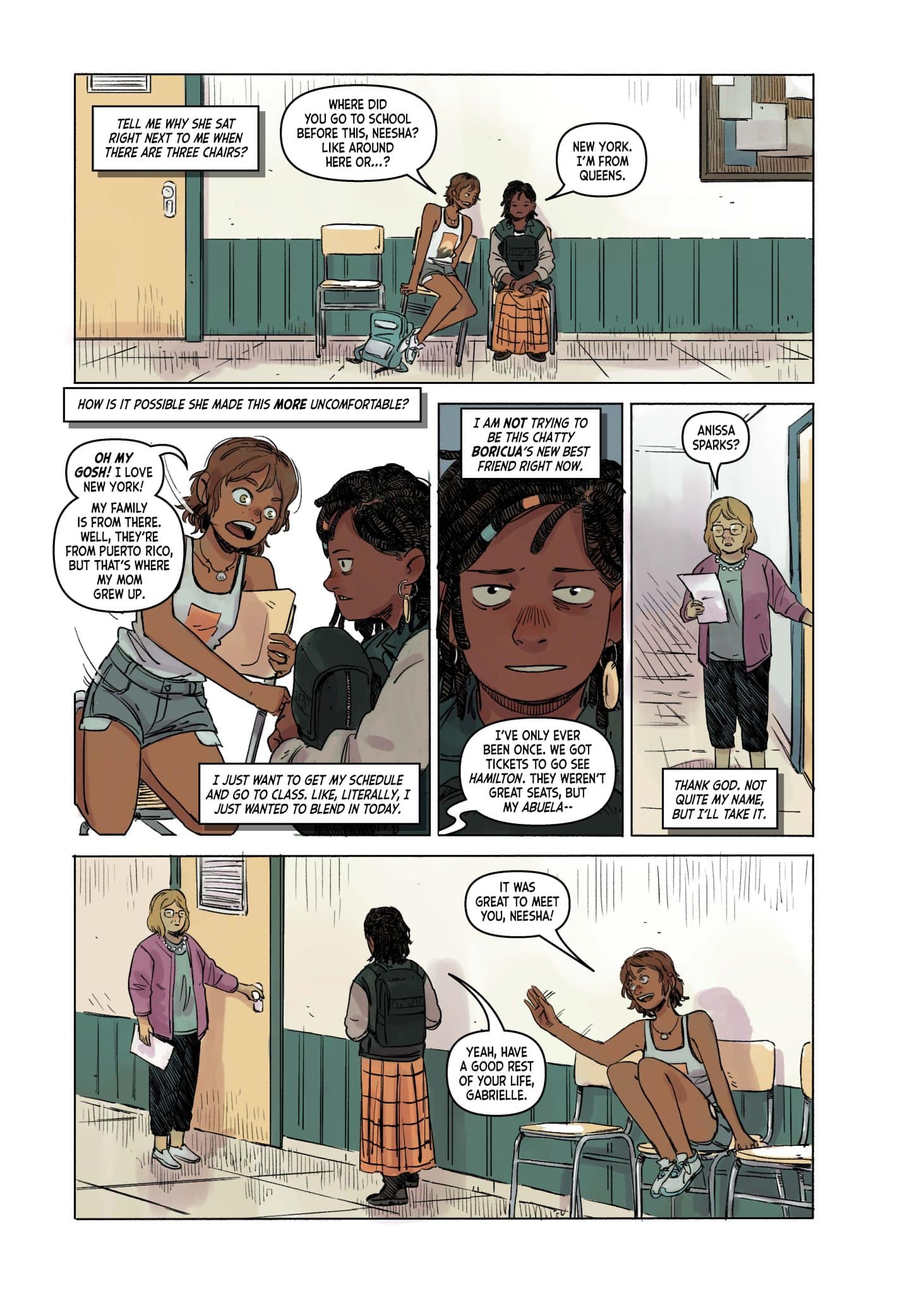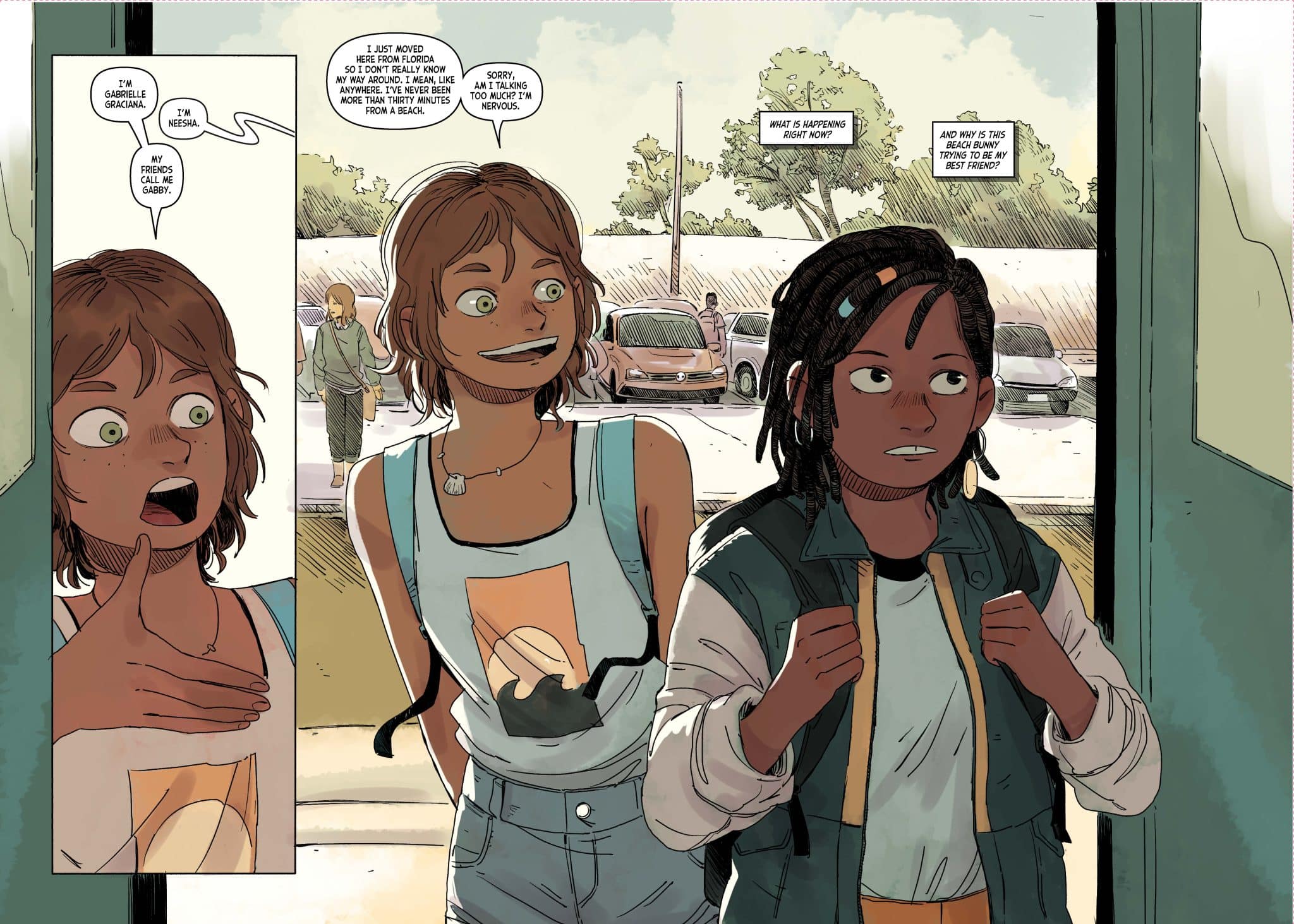 Neesha Sparks is a disabled, vocal community activist with a passion for costume design. Gabby Graciana is an optimistic surfer – and, like Neesha, a new kid at school. When the two girls discover that they like the same manga series, Navigator Nozomi, they become more than just fellow new kids. But it was more than just having read the same book series–neither of them had finished it! Soon, they become new friends on a mission – to track down the remaining Navigator Nozomi books. This slice-of-life romance follows the two girls as they adventure across North Carolina to find each book, with their story intercut with the tales of Navigator Nozomi. Neesha and Gabby find more than just the books though – they find acceptance, friendship, understanding, and love.
