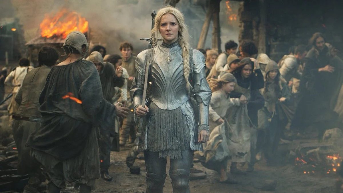 The first episode of Rings of Power opens in a similar manner to the Lord of the Rings: Fellowship of the Ring with a voiceover from the Elf queen Galadriel. However, she’s played by Morfydd Clark in the show, and her voiceover tells the story of her childhood in the deathless land of Valinor where two trees kept everything in perpetual light until they were destroyed by Morgoth, an evil so strong that he’s not even shown on screen and just depicted as a dark rot. This evil leads to an epic war where Amazon Studios has shown that no expense is spared in regards to CGI eagles, dragons, ships, and fireballs and also gives Galadriel her motivation in the series because her brother Finrod was killed by Sauron, who may have survived after the war and is being hunted by Galadriel and her Elves.
