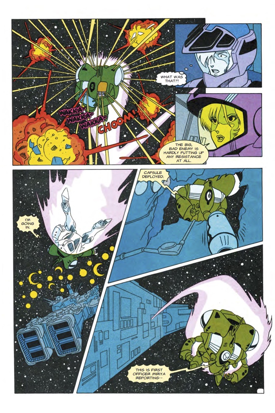 That my friends, is Kraniak. He is a man with a head so large, that his body literally cannot bear the weight. This requires an amazing helmet that holds his entire tiny body off the ground. It also has two enormous chicken feet on either side so he can walk. He answers to a swarm of hairy robot bugs who are not pleased that he keeps losing to Ninjak. They threaten to take away all that they have given him. I assume this means his walking helmet. I also assume it means that, the only way he could move would be to roll on his face while his body dangles helplessly from his neck. Spoiler alert. We never get to see him roll around on his face. It’s a huge letdown.