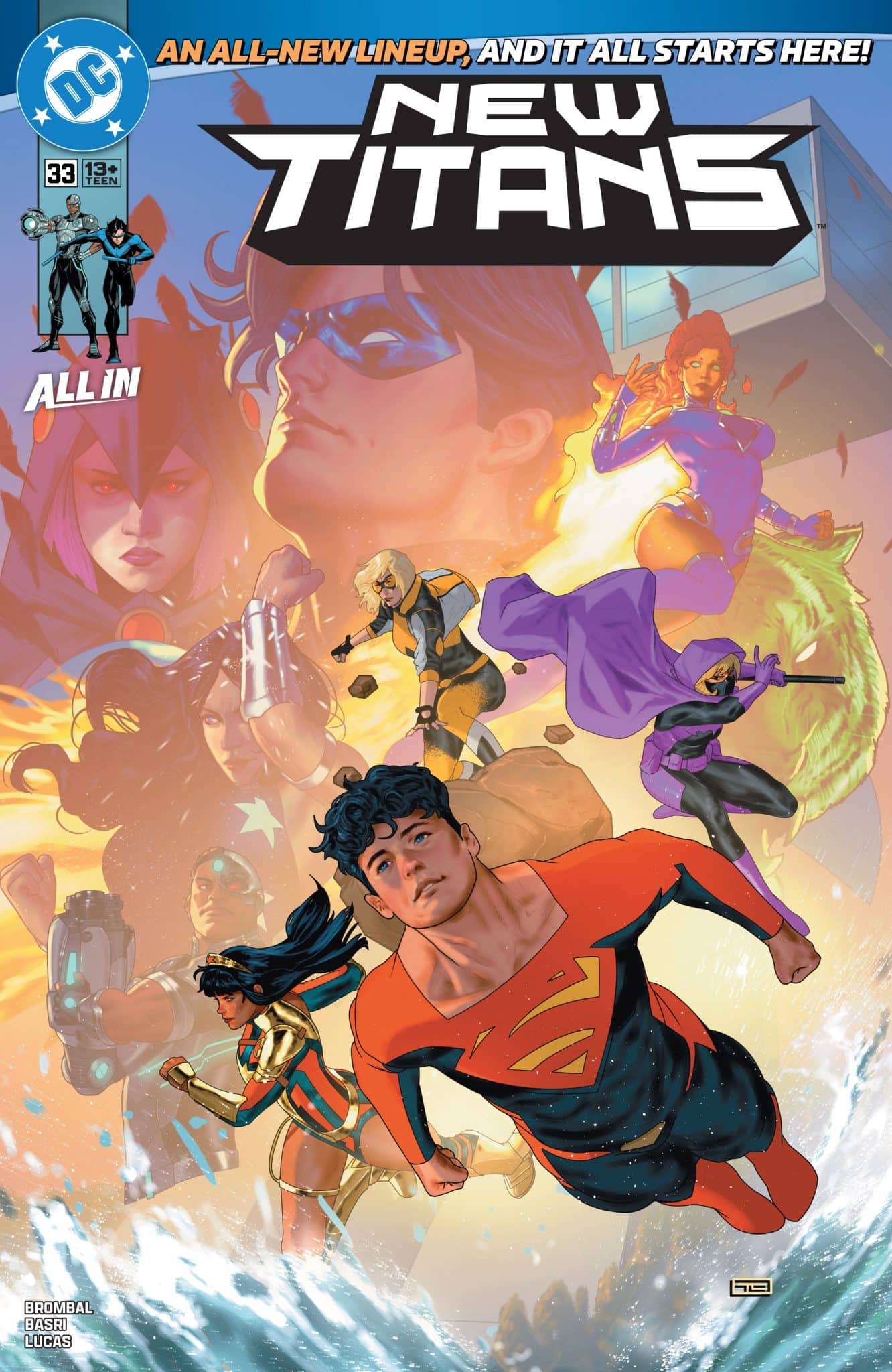 WHO ARE THE NEW TITANS? After helping save the world from yet another world-ending event, the Titans have earned some much-deserved rest. Back in Titans Tower, they’re glad to be reunited again… But it almost feels too good to be true. Are these Titans who they claim to be? And if they can’t trust each other… can they even trust themselves? Tate Brombal and Sami Basri kick off a brand-new era for the next generation of superheroes!