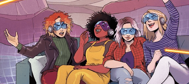 Renegade Rule is an original graphic novel from Ben Kahn, Rachel Silverstein, and Sam Beck that is a perfect fusion of a sports manga and a queer romance story set in the world of competitive video games. Even if you’re like me and have only attempted to play Overwatch a single time, Renegade Rule and its world are quite accessible via things like hypercompetitiveness, sexual tension, and breathtaking fight choreography. The in-game sequences are almost like musical numbers and use shooting, sniping, and various acrobatics to make characters’ unspoken thoughts real. Renegade Rule is like if your favorite sports movie and romantic comedy had a gay baby who loved kicking ass at video games, and I pumped my fist every time the Manhattan Mist overcame adversity or overwhelming odds and smiled when certain characters ended up with each other…