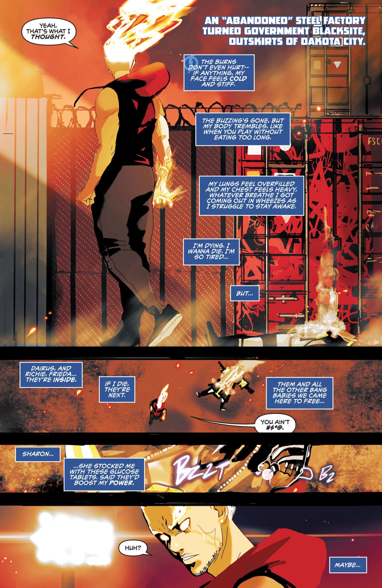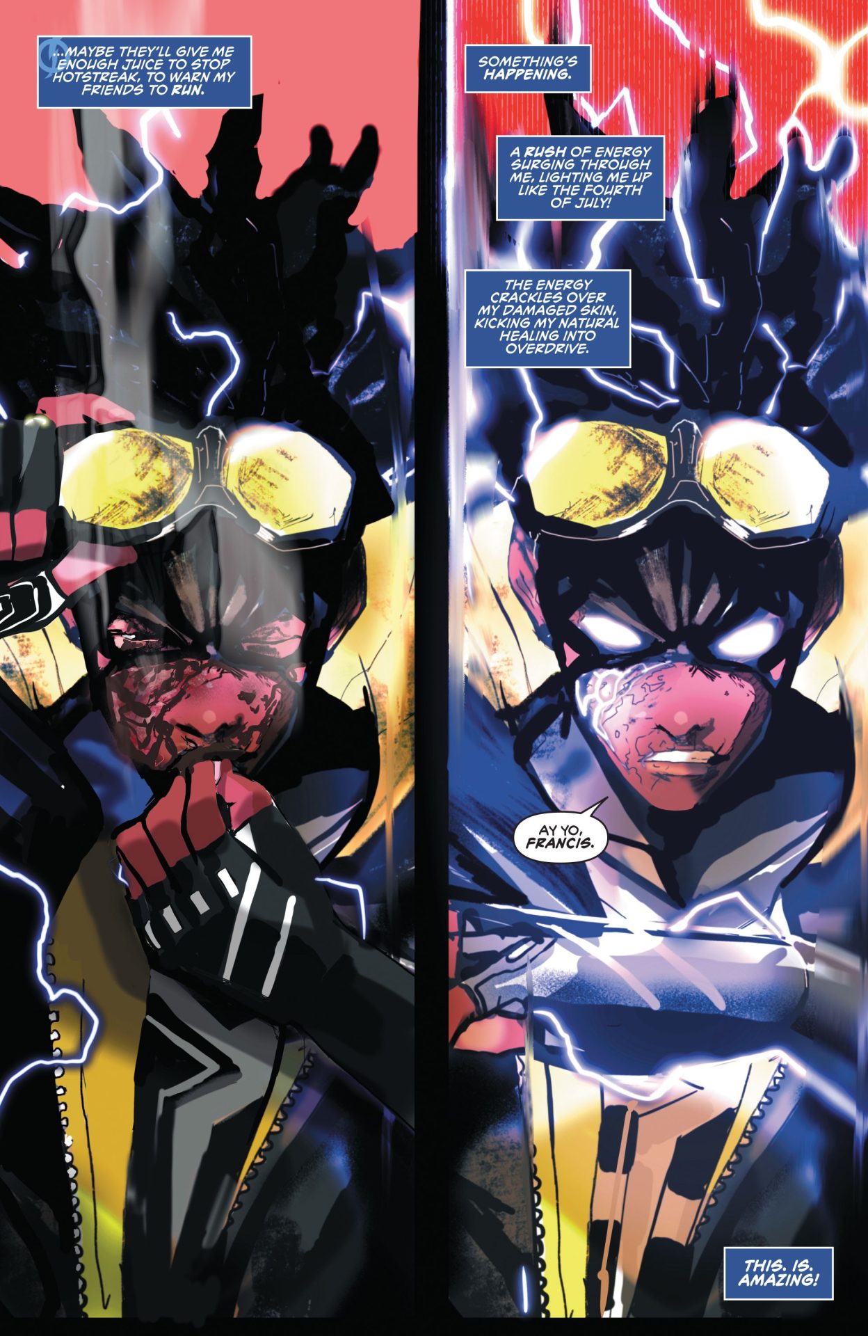 If Static wants to liberate the imprisoned Bang Babies of Dakota, he’s going to have to turn them into an army…and unfortunately for him, he’s also going to have to fight alongside-and even worse, trust-the jerk who tried to burn down his house: Hotstreak!