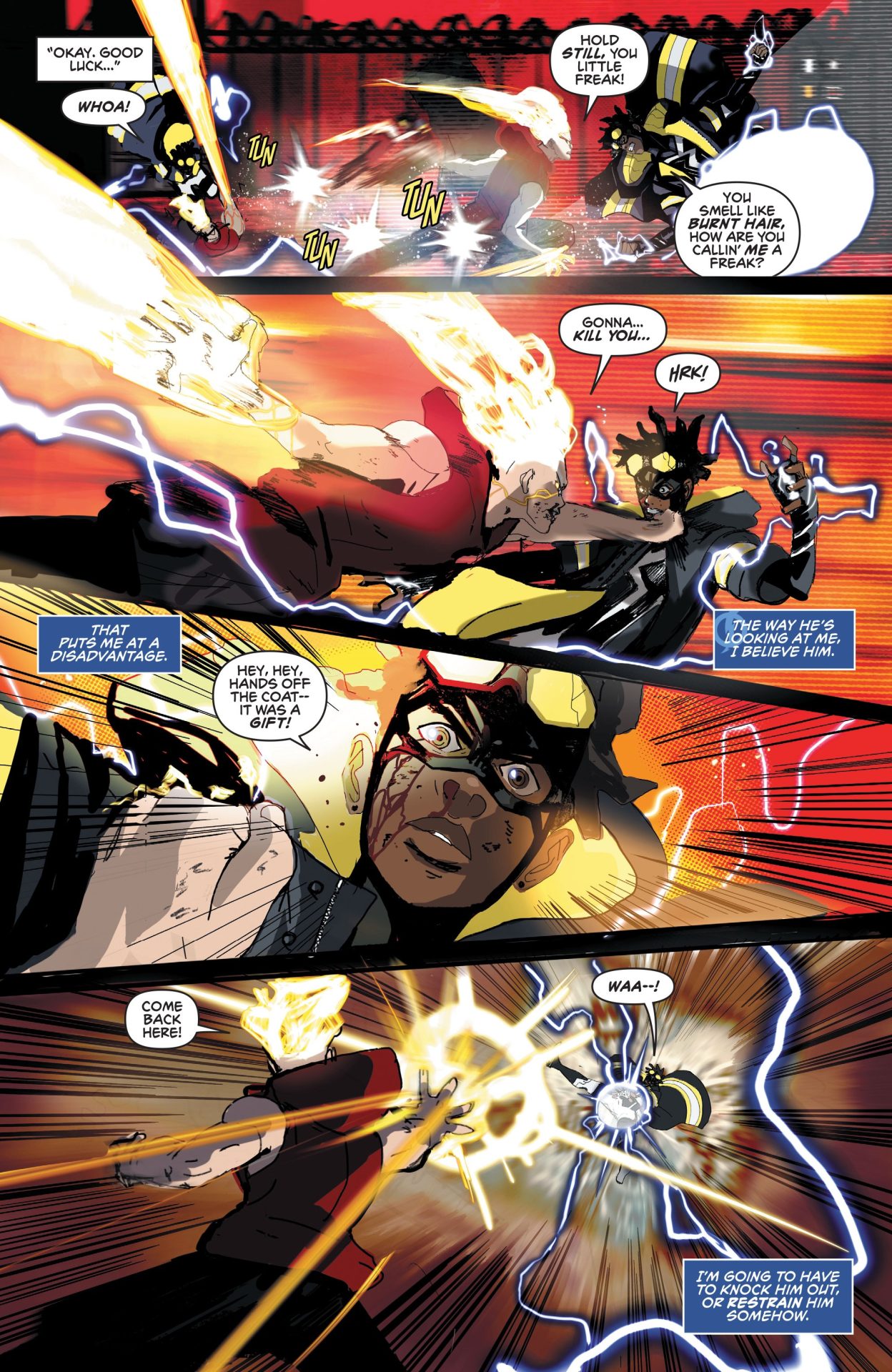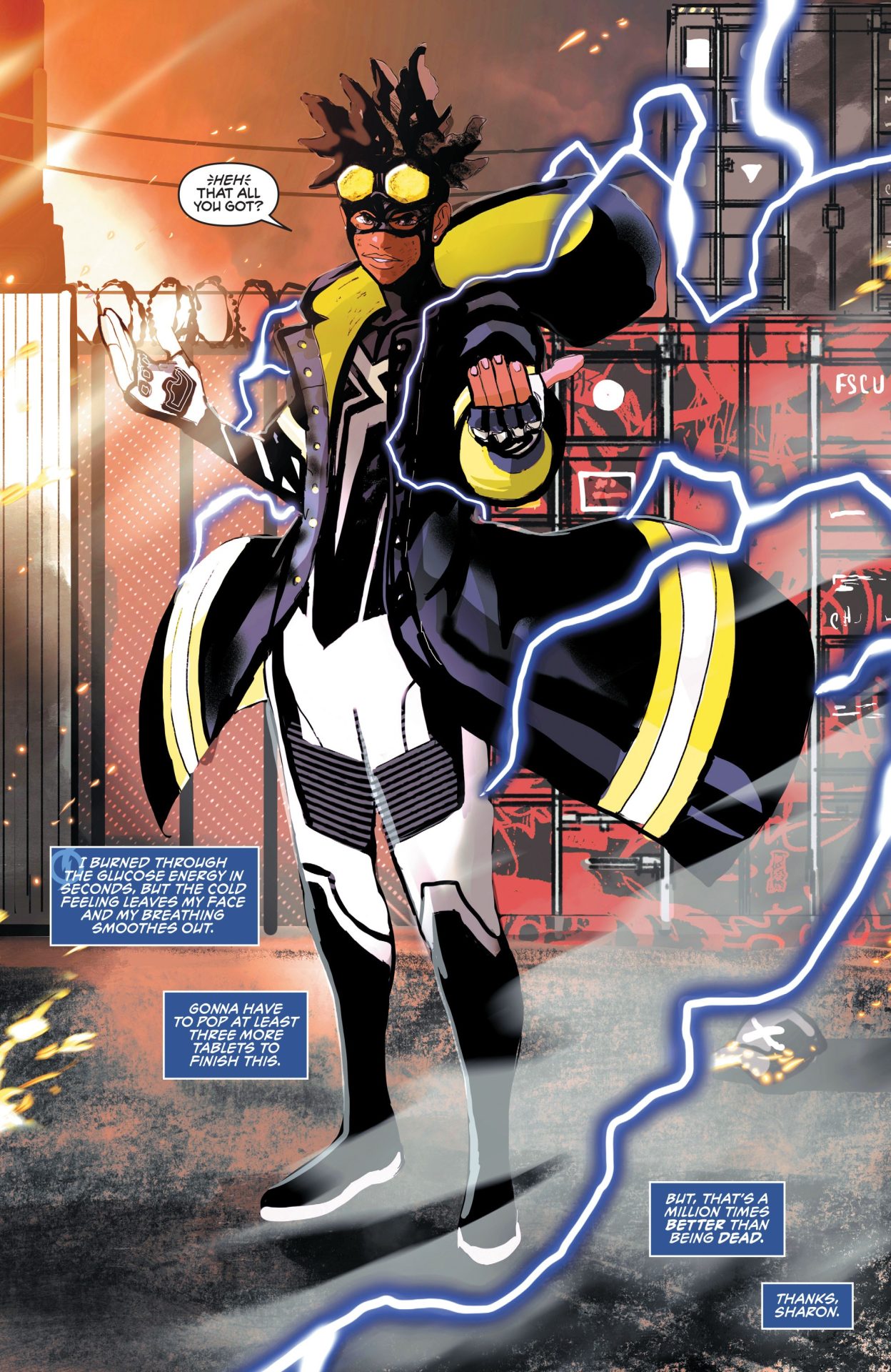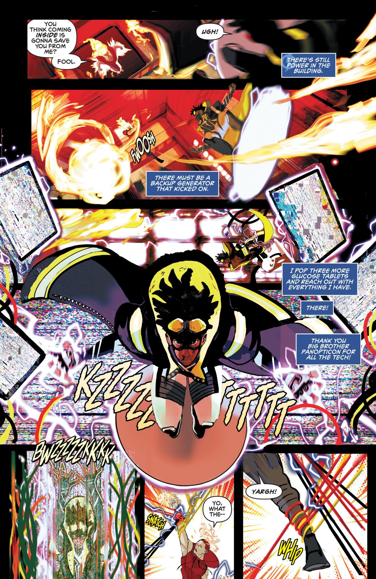 Static has become much more focused with his abilities compared to the early issues, and this visual depiction of him flows directly into Ayala’s words and script, which is all about the importance of community and using anger to create change. Static Season One began with a moment ripped from recent headlines with Virgil Hawkins and the other Bang Babies getting their abilities at a Black Lives Matter protest, and Vita Ayala and Nikolas Draper-Ivey haven’t shied away from exploring the realities of systemic racism and false media narratives. In this issue, Ayala takes aim at the hollowness of the American dream through their writing of the smarmy “G-man” Jones, who unironically extols the virtues of bootstraps capitalism and generally talks shit about folks like Static, who aim to unite their community against injustice.