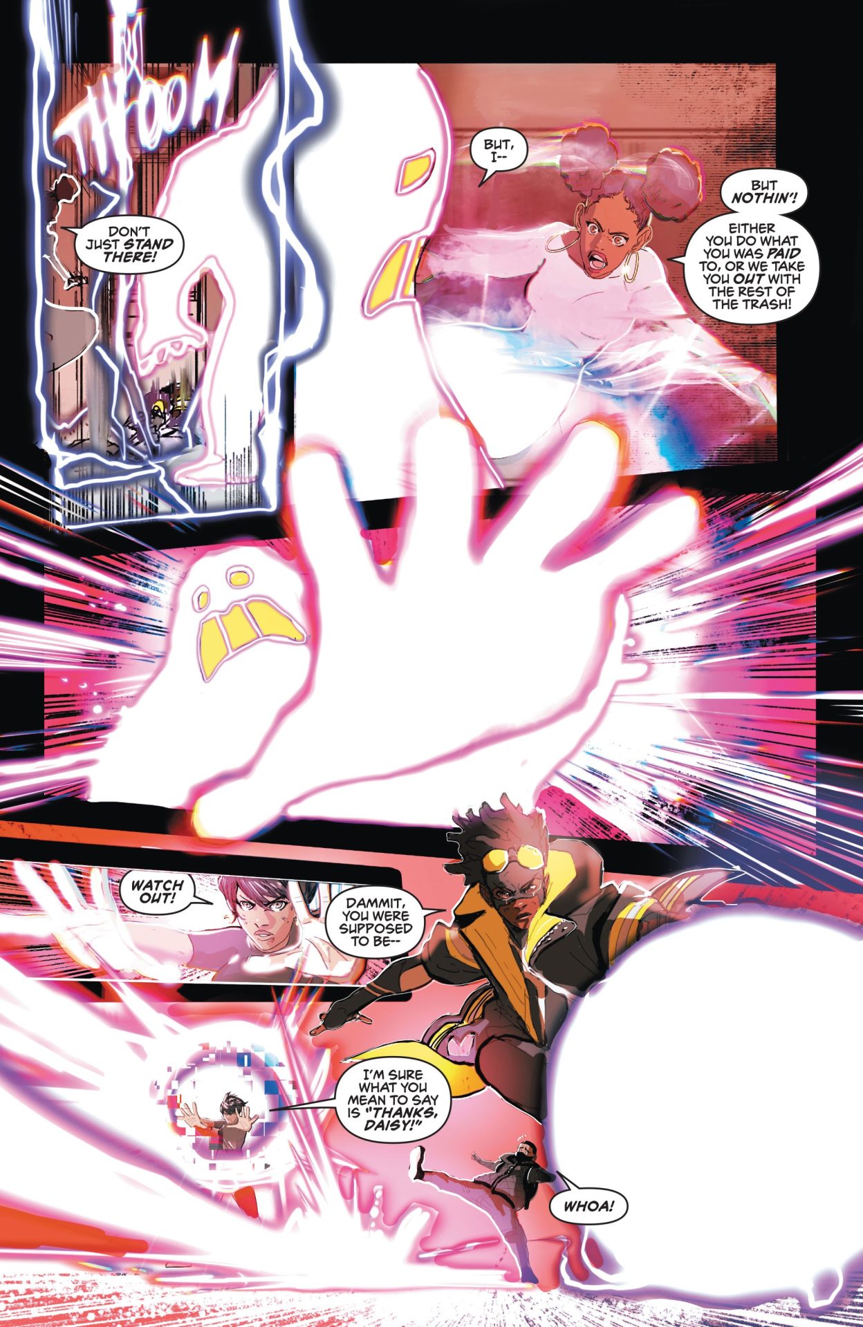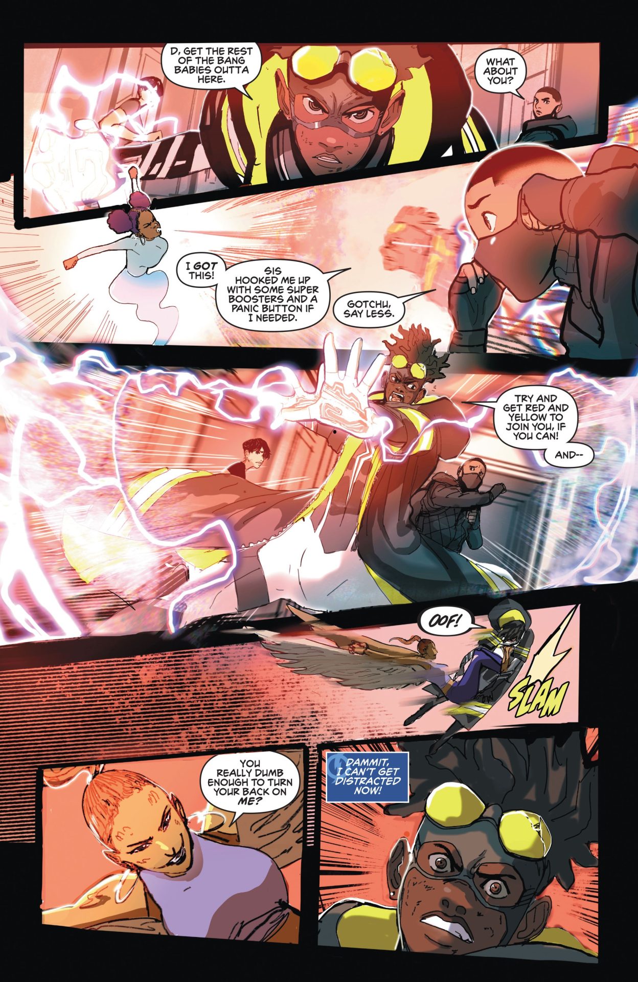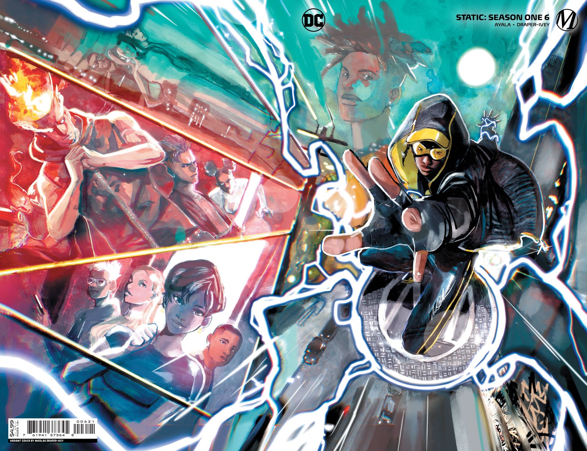 In the midst of all the fight and cool powers, Ayala and Draper-Ivey don’t neglect the relationship between Static and his family giving them a nice scene bathed in light where he outlines why he wants to be a superhero and their reactions to his plan. It’s only about three pages and most of the characterization has been done in previous issues, but the Hawkinses ground Static giving him a base and set of values as he sets out to change the world and protect his fellow Bang Babies while looking good doing it. You can see what his parents and sister instilled in him through Static’s actions throughout the book, especially as he addresses the whole world via his friend Darius’ streaming rig. (He got some great character development too going from an annoying clout chaser to being Oracle with a Twitch account.