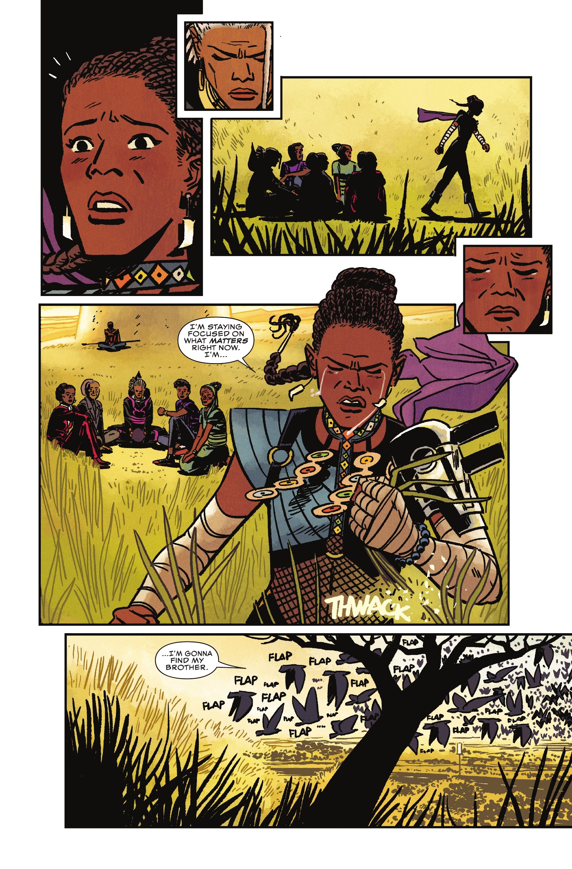 We catch-up with Shuri, as we find out how she beat back Thanos Black Order, as she gained knowledge from her ancestors during her trip to the Djala, a journey which has made her stronger and wiser. As T’Challa leaves for Wakanda’s first space mission, the sovereign duties fall to the Wakandan princess, a role she is not completely sure she can do. Unfortunately, T’Challa, goes missing and a clandestine council takes it upon themselves to ask Shuri to step up and become the Black Panther. A role she is reluctant to take up, as Storm comes to help her, she tries some alternative methods to find him, which leads her to astral project her conscience into Groot. T’Challa’s absence has also caught the attention of “Africa Forever” a collective that represents the communication between Wakanda and the rest of Africa, as an expanding black hole opens up in Timbuktu, which brings Tony Stark to Africa. By book’s end, Shuri has averted trouble, stopped a local villain and finally is ready to become the Black Panther.
