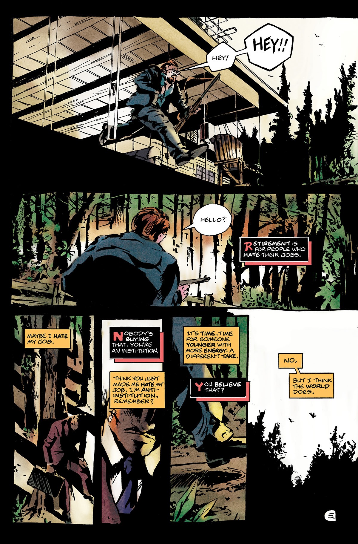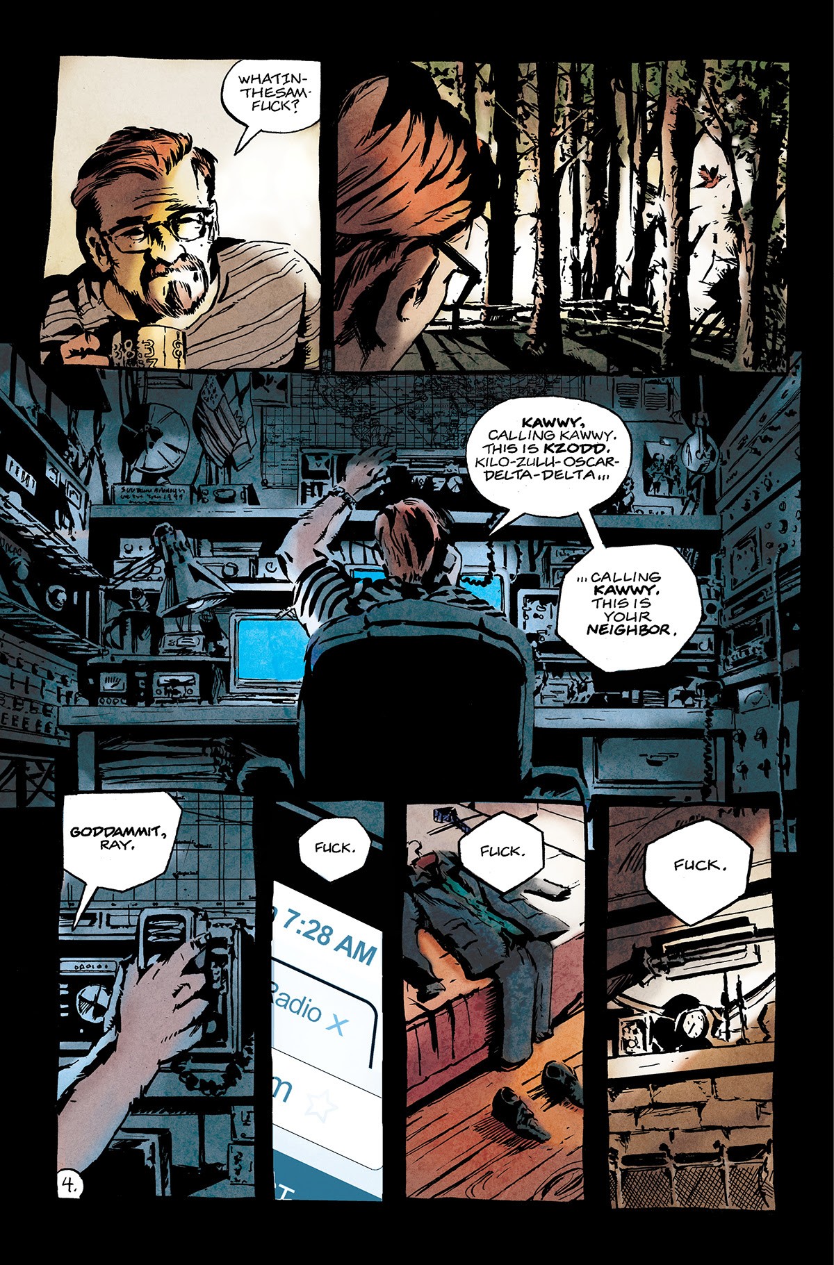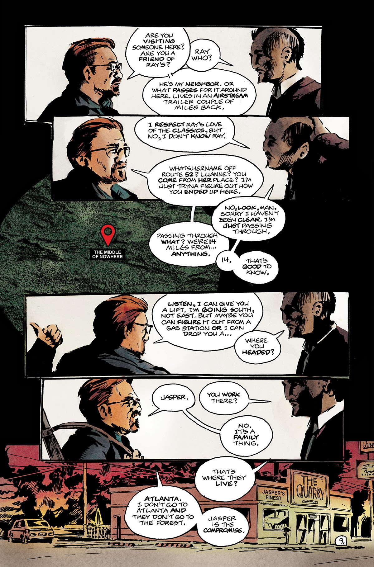 My favorite part about this story is that it reads like an actual novel. Writer Patrick Kindlon composes dialogue the way playwrights and novelists write it. All of it reads like a natural conversation. These conversations cover a vast array of subjects, from various known conspiracy theories to the flora and fauna of Georgia, to seemingly mundane topics. Even though these conversations seem random they reveal small details about both the stranger’s history and Richard’s past. The narrative Kindlon creates from these fractal character details, and intensive dialogue is full of suspense. I was so engrossed in this book that I read all one hundred thirty-two pages in a single sitting.
