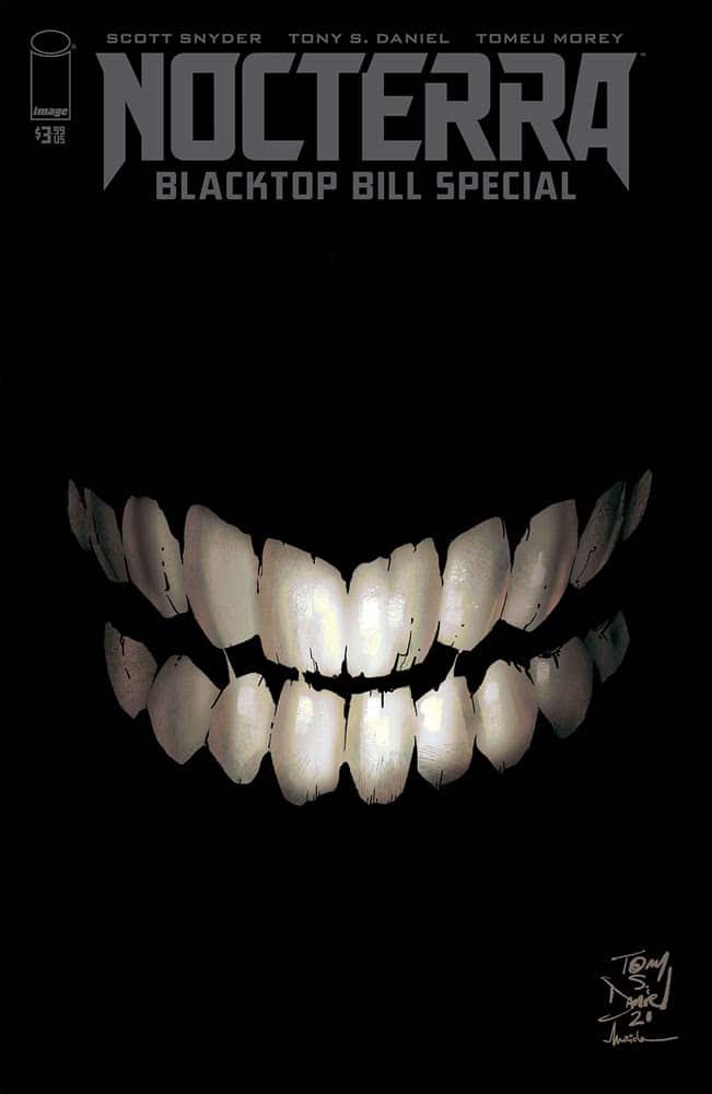 Behold the book of Blacktop Bill. In the wake of the first arc’s explosive finale, the origin of Nocterra’s most terrifying creature will at last be revealed in Nocterra Special: Blacktop Bill. Witness the horrors that await…
