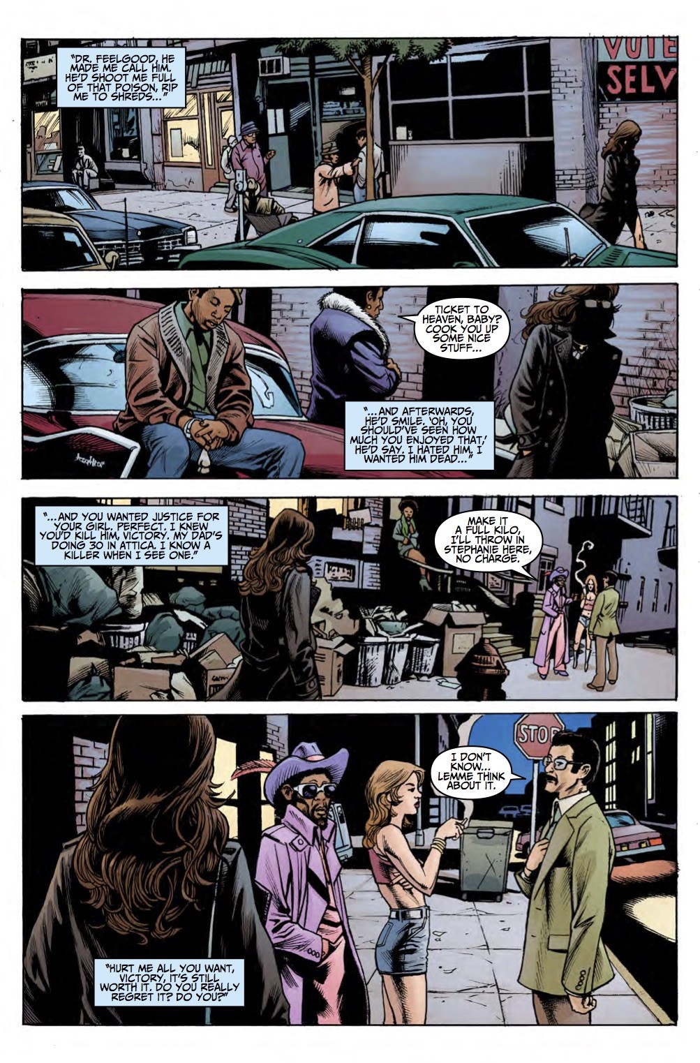 AG: We were so pleased with the way the artwork turned out. From the beginning of the project, we envisioned it as having the same gritty look as a 70s movie. It was very important to us that it didn’t look jokey or cartoonish. And Steve’s panels were more than we even hoped for.