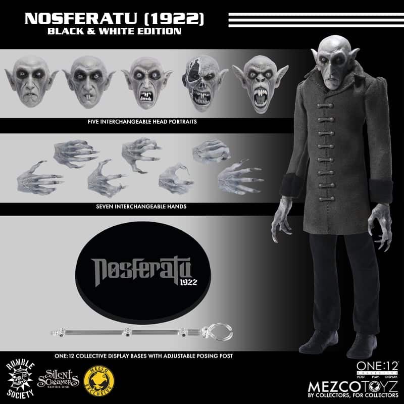 Inspired by the poster art for the 1922 film Nosferatu: A Symphony of Horror, the original “Count Orlok” figure was sculpted by Stephan Linder. The One:12 Collective Nosferatu is a reimagined tribute to the original figure.