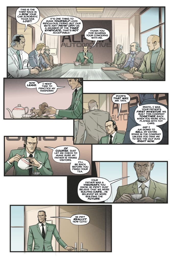 The Shooting Star is in flames. Alpha Automotive is in free fall. And Dante Ferno is calmly stuffing a squirrel. As Racer X hits the icy switchbacks of the Great Alpine Race in a mysterious new car, the Tiger Syndicate closes in, racers play dirty, and Dante serves poison with a smile. But when a landslide threatens to wipe out the field, only one car can cut a path to survival…provided it doesn’t run out of brake fluid first!