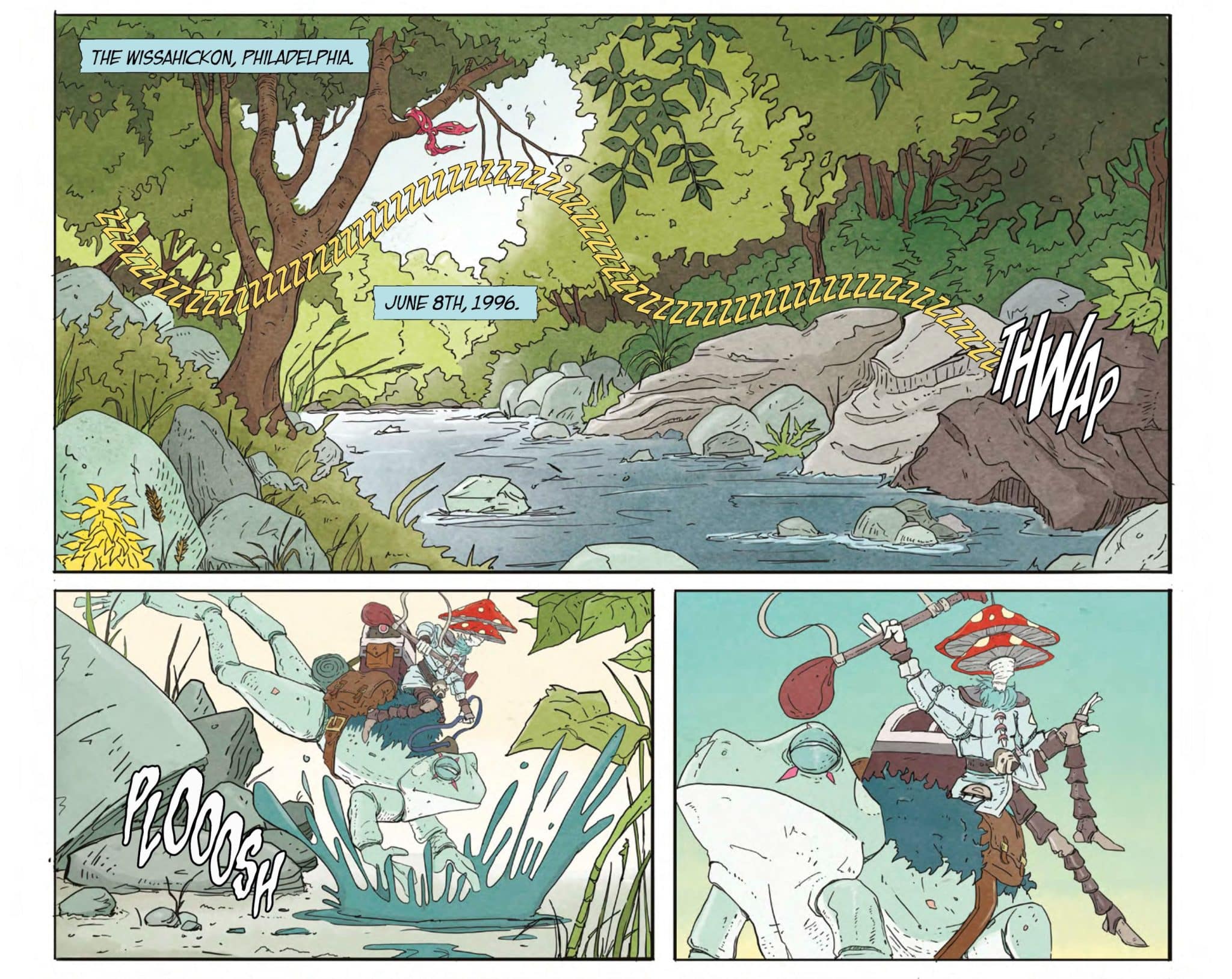 Picking up from where The Mushroom Knight Volume 2 left off, this latest story continues the epic journey of Mushroom Knight Gowlitrot and his endearing human friend, Lemuelle. Mysteries abound as the Hashkasha’da ritual looms–a ritual that will rid the Wissahickon of trash so long as the fae community offers up a substantial sacrifice of their own. Before this story ends, that sacrifice will be made, Lem will face her fears, a conspiracy will tighten its grip on the Gödel and human communities of Philadelphia…and Gowli will be in more danger than he’s been in before!