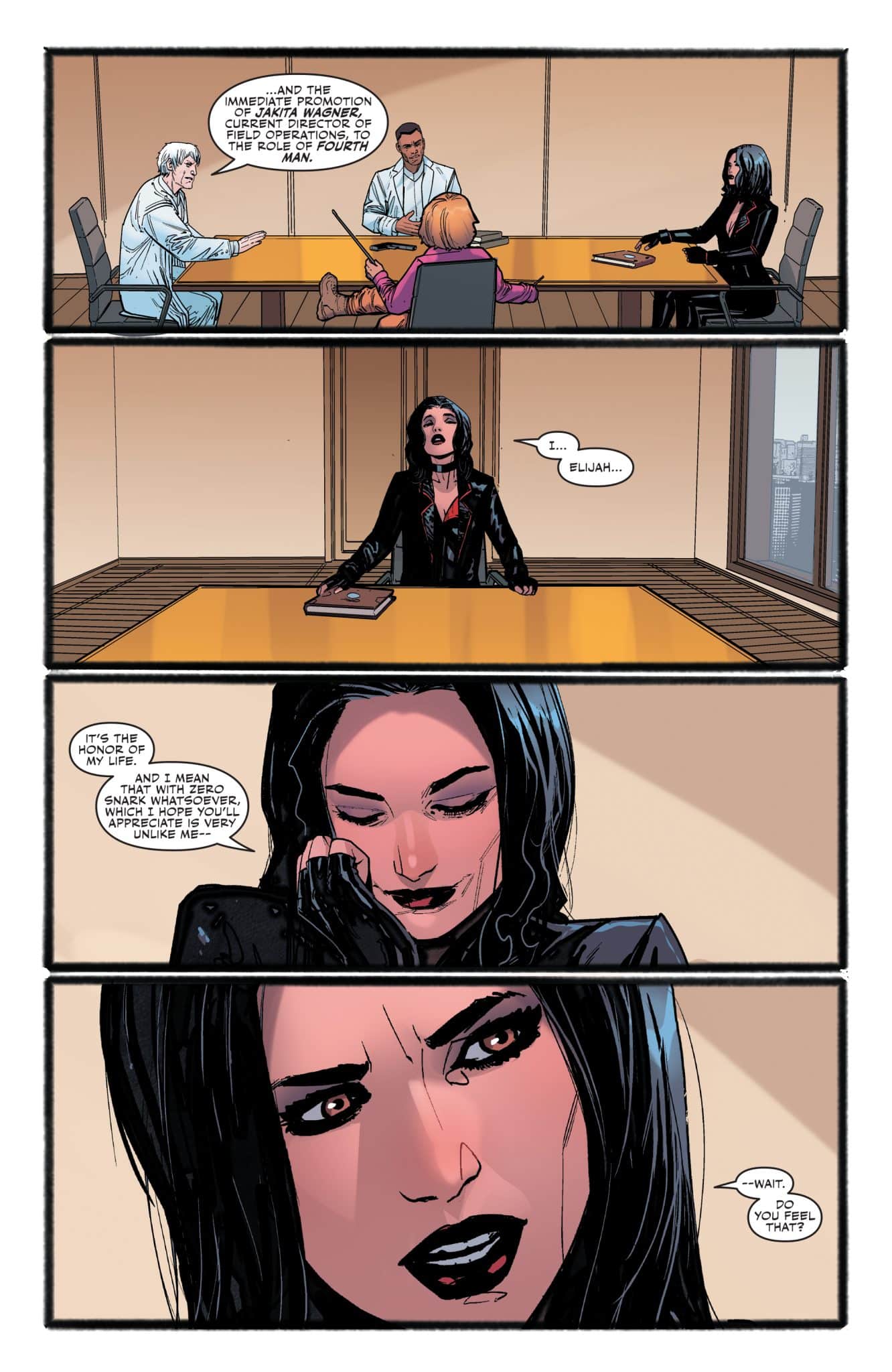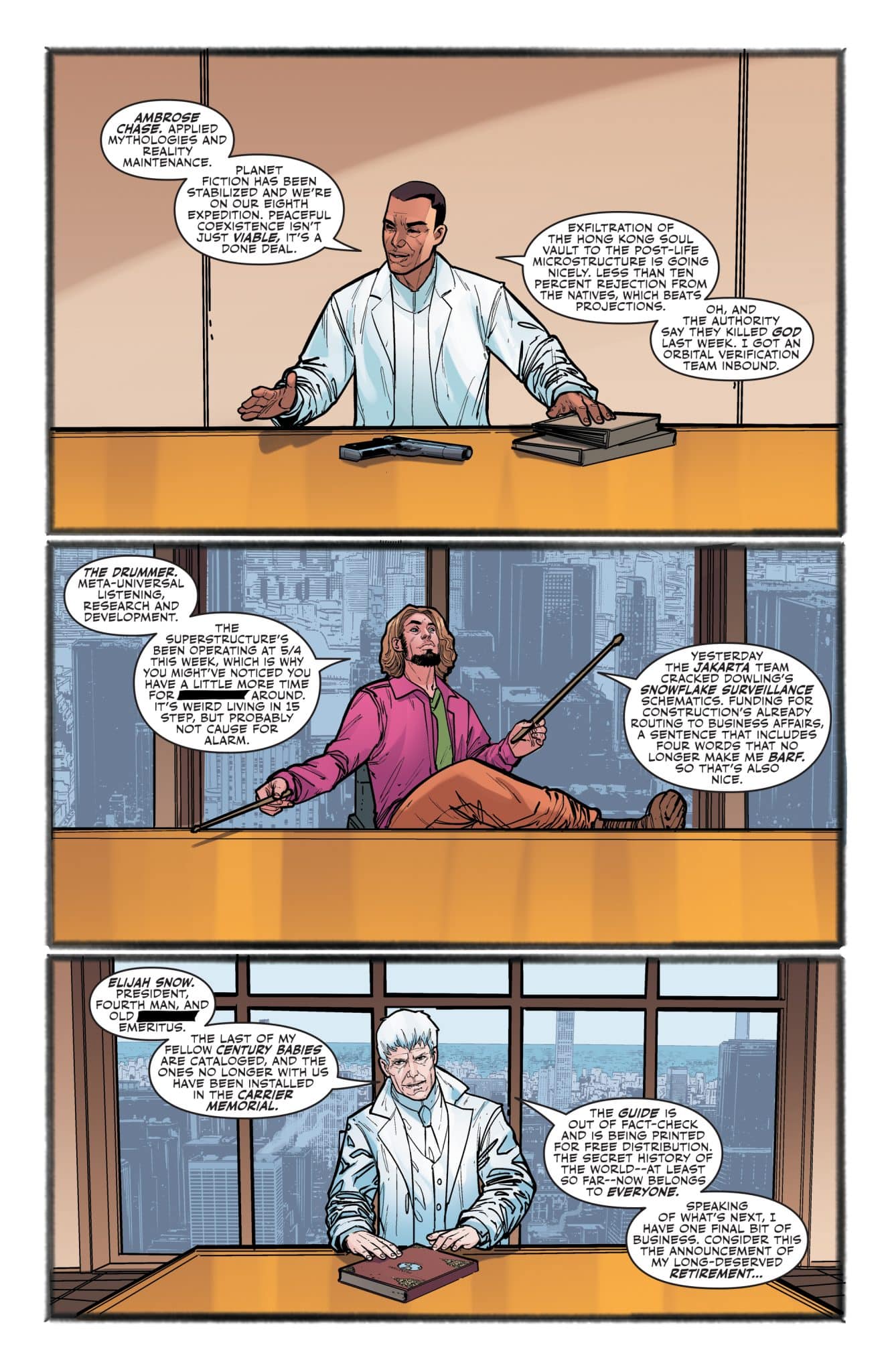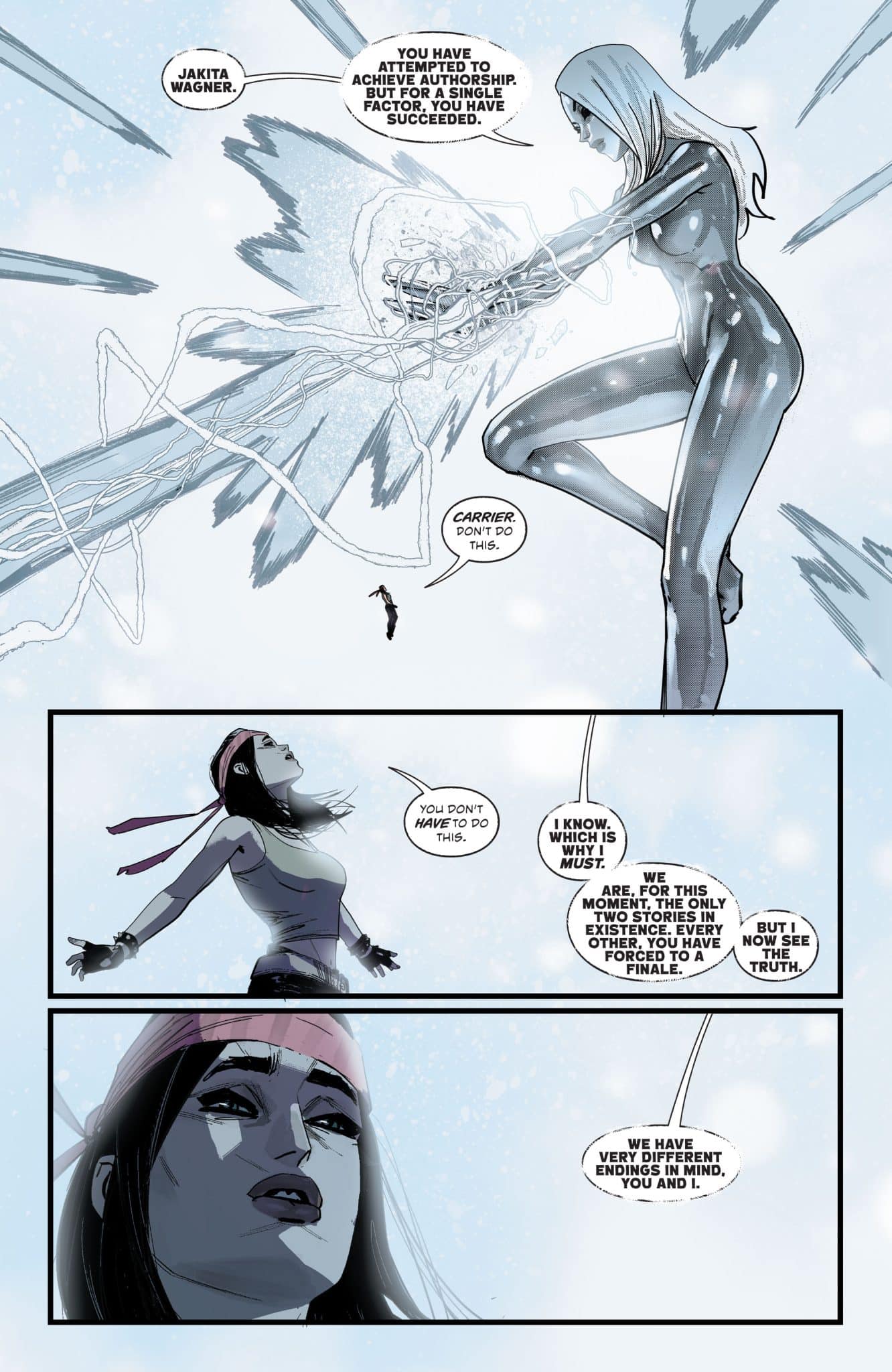 As they grapple with the shocking revelations of the last three issues, the Outsiders race to protect the fabric of reality. Within the Carrier, the Drummer is ready to play her encore–and it’s going to bring the house down.