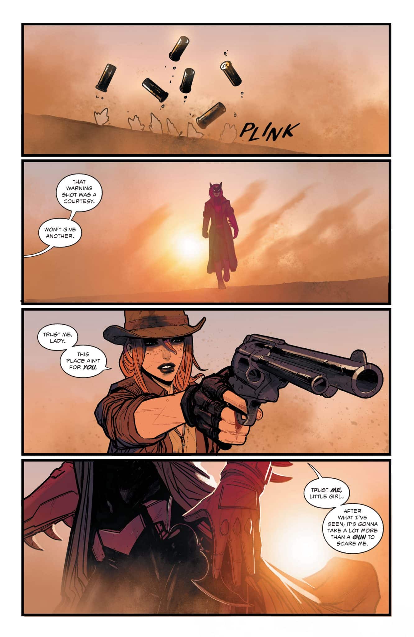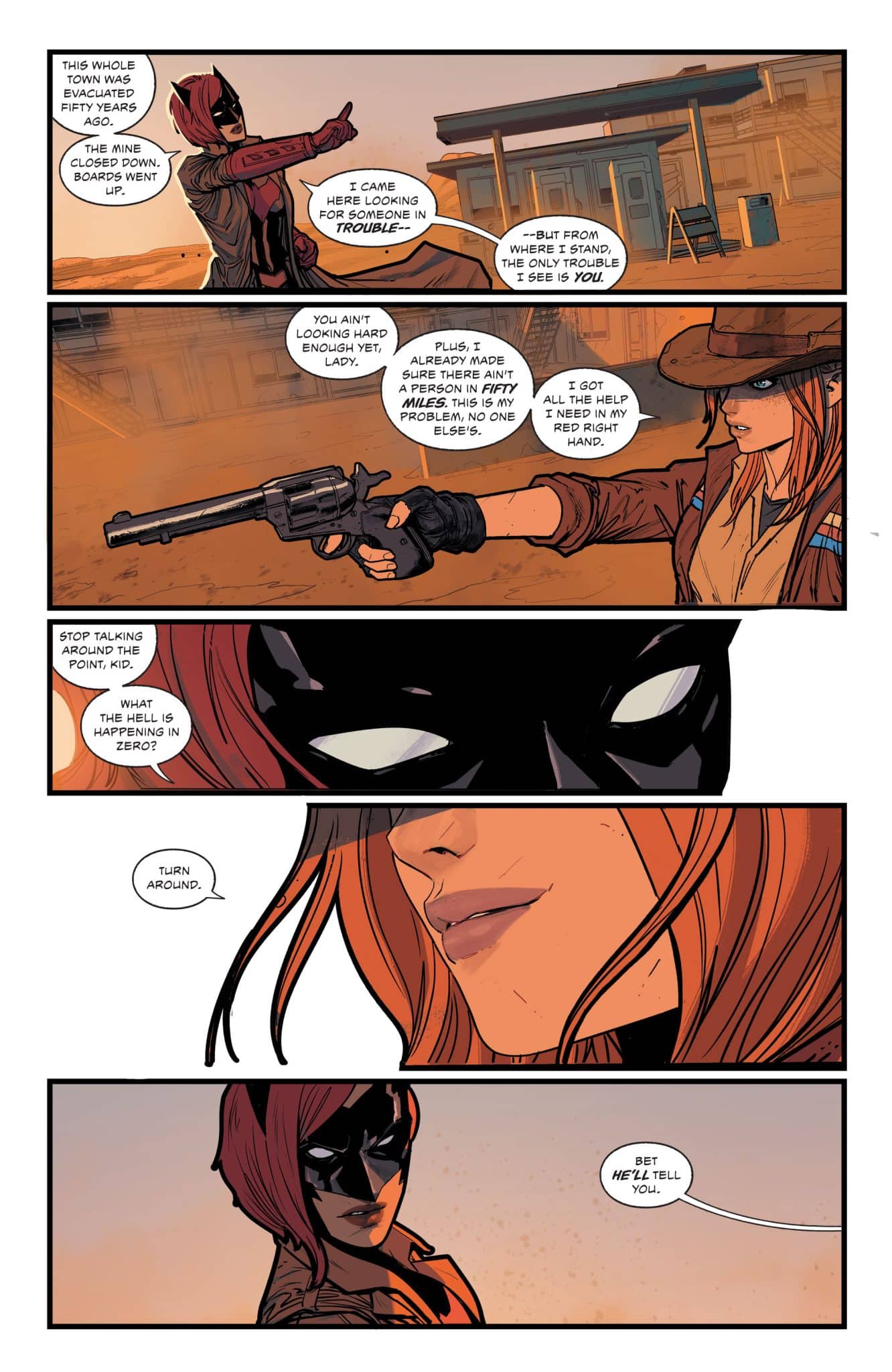 Following the explosive revelations of last issue, Batwoman departs the Outsiders on a solo quest of her own design. In the storied deserts of the American southwest, a dangerous specter stalks the innocent and guilty alike with a vengeance that spans all the way back to those first dark days of the Old West. Anyone with violence in their heart can become the victim…or the perpetrator. Can Kate Kane hunt this monster down before more innocent lives are destroyed…or before it consumes her soul with its violence as well? Guest-starring Young Justice’s Jinny Hex, this issue is a brutal showdown for the soul of the Batwoman!