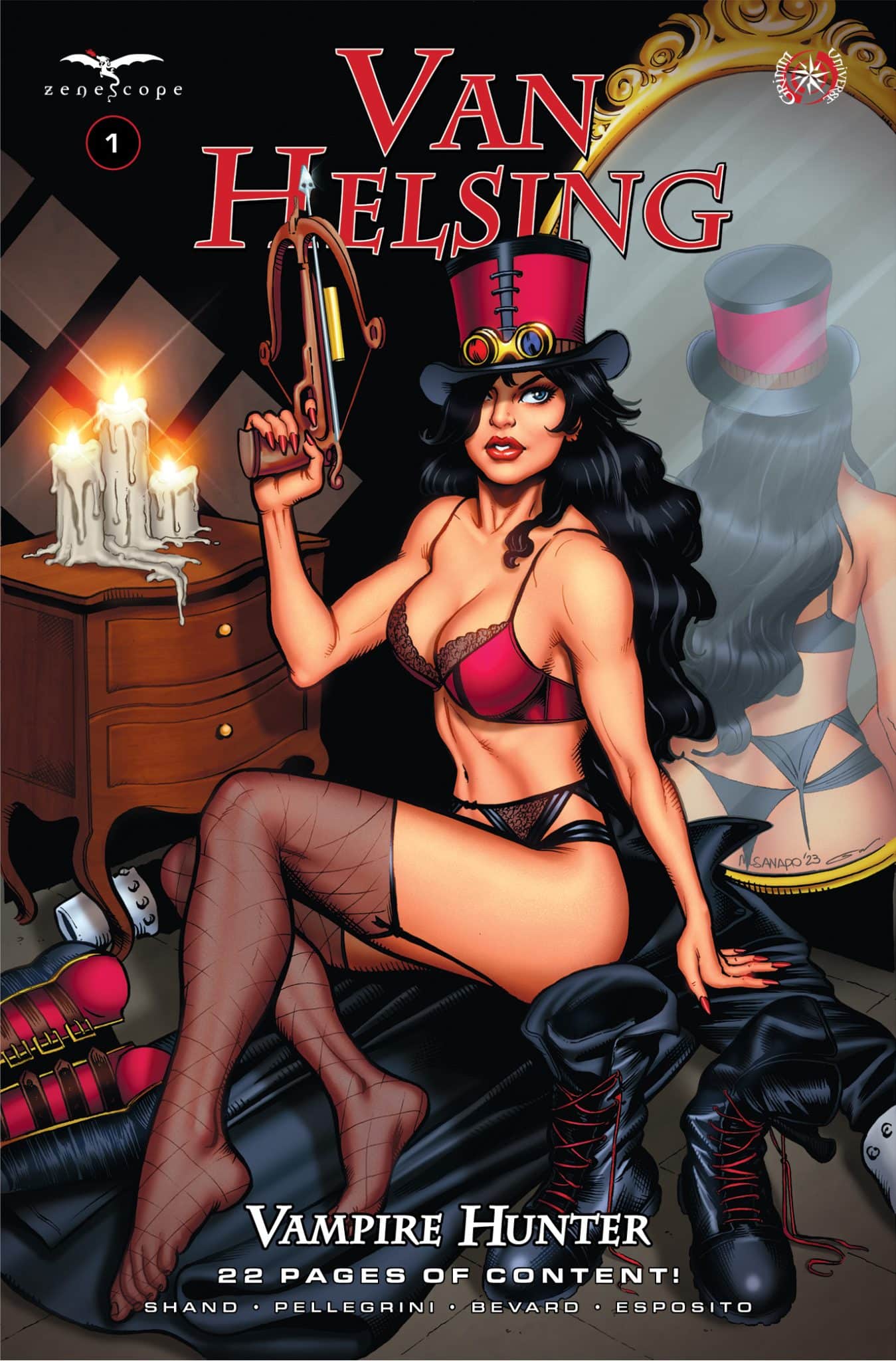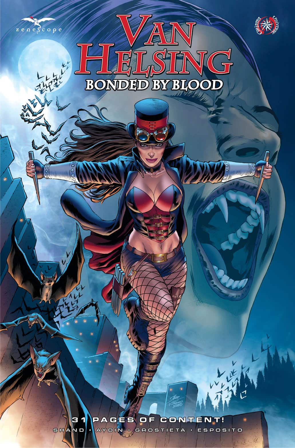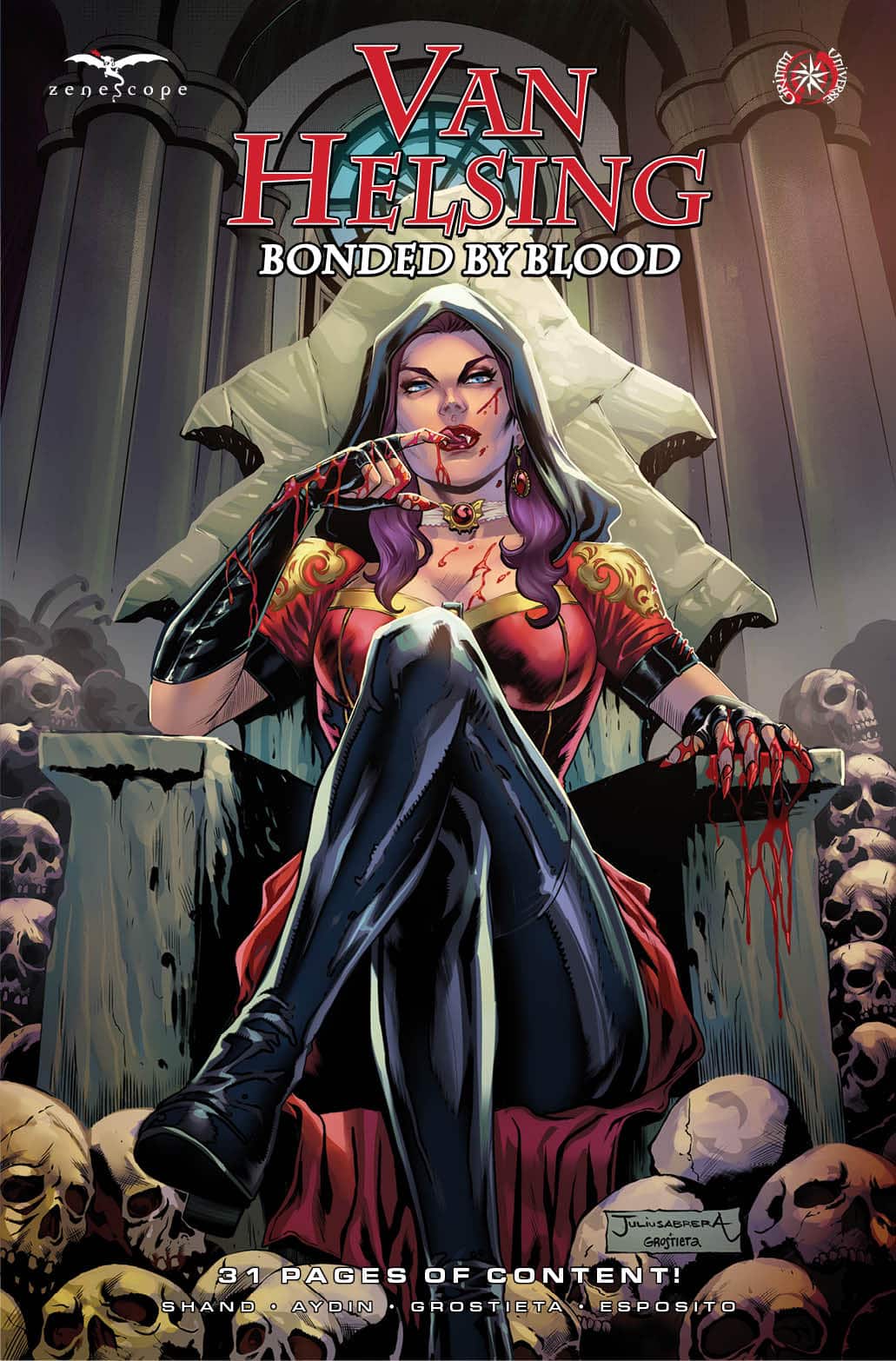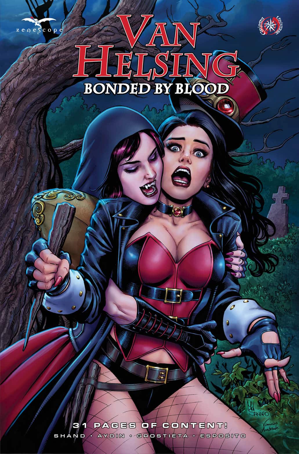 Just in time for the Halloween season comes the Grimm Fairy Tales 2025 Halloween Pinup Special! Get ready to check out all of your favorite Zenescope Universe heroines and villainesses, donning the cosplays of pop culture’s most famous monsters! Some of the industry’s top artists contribute gorgeous pin-ups in this stunning collection. Also includes a never before published Grimm Fairy Tales short story!