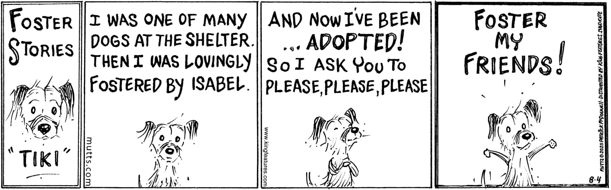 MUTTS’ Adopt Lovecampaign will be live from Friday, August 4 through Sunday, August 31. Fans can also pre-order McDonnell’s upcoming picture books The Gift of Everything and The Gift of Nothing Anniversary Edition, whichwill both be available on October 7, 2025 from Little, Brown Books for Young Readers. Fans who pre-order both books together from the MUTTS website will receive a free The Gift of Everything print.