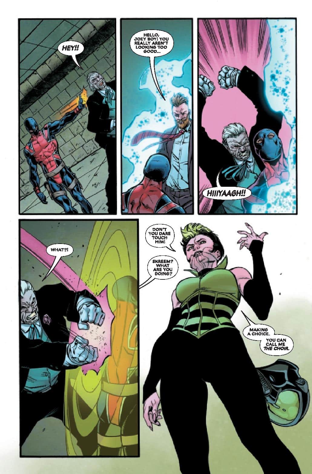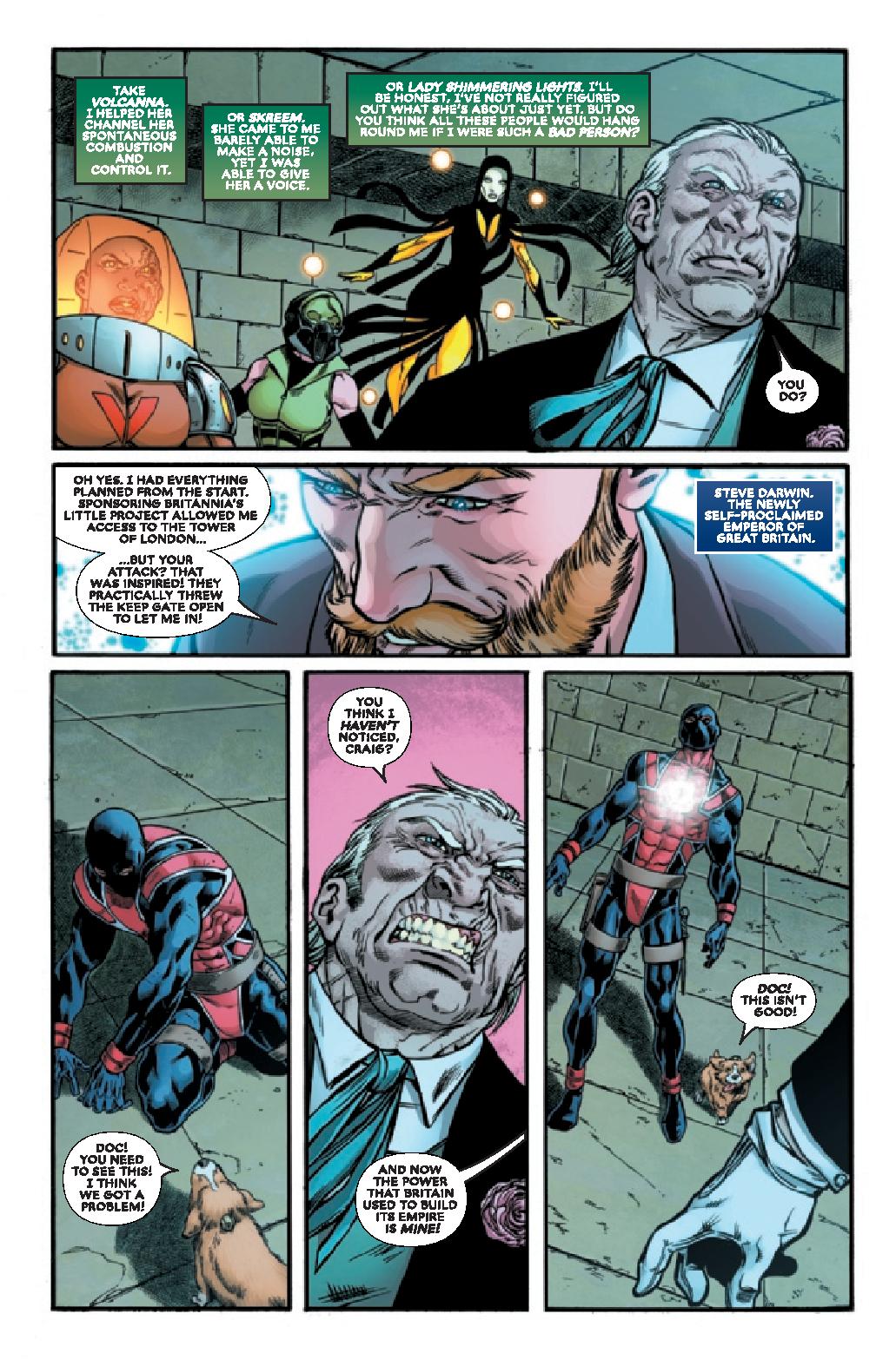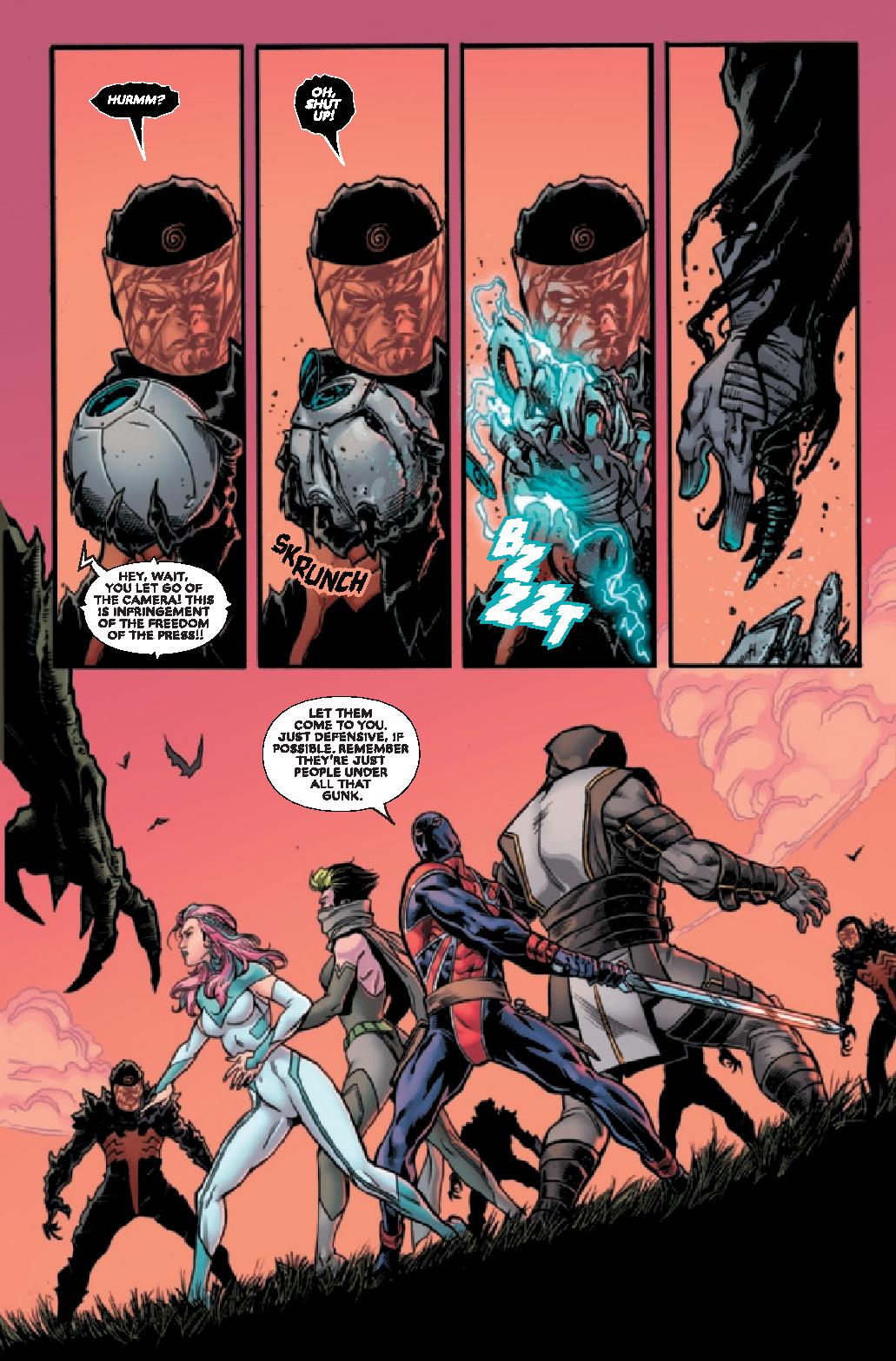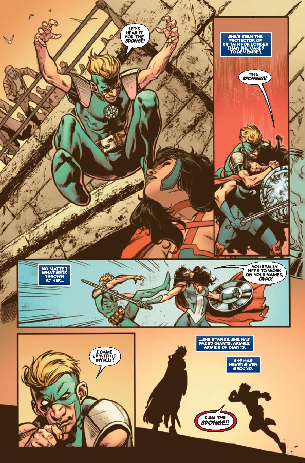 As I mentioned earlier, Andrea Di Vito, Drew Geraci, LeBeau Underwood, and Nolan Woodard’s art is probably the less egregious part of The Union #1. For example, Woodard uses deep blacks for the symbiotes against the cloyingly bright palette of the Somerset to show how silly all the media prattle seems against a real threat. In the same scene, Di Vito, Geraci, and Underwood channel medieval compositions when Britannia goes against a symbiote dragon while quipping about St. George not actually being British, which is a nice bit of satire about the emptiness and historical inaccuracy of nationalist symbolism from Paul Grist. If only the rest of the comic could have synthesized wit and action like these pages. However, I didn’t have many complaints about the art. It’s easy to follow, and each team member has a distinct design and power set even if their personalities aren’t as fleshed out yet.