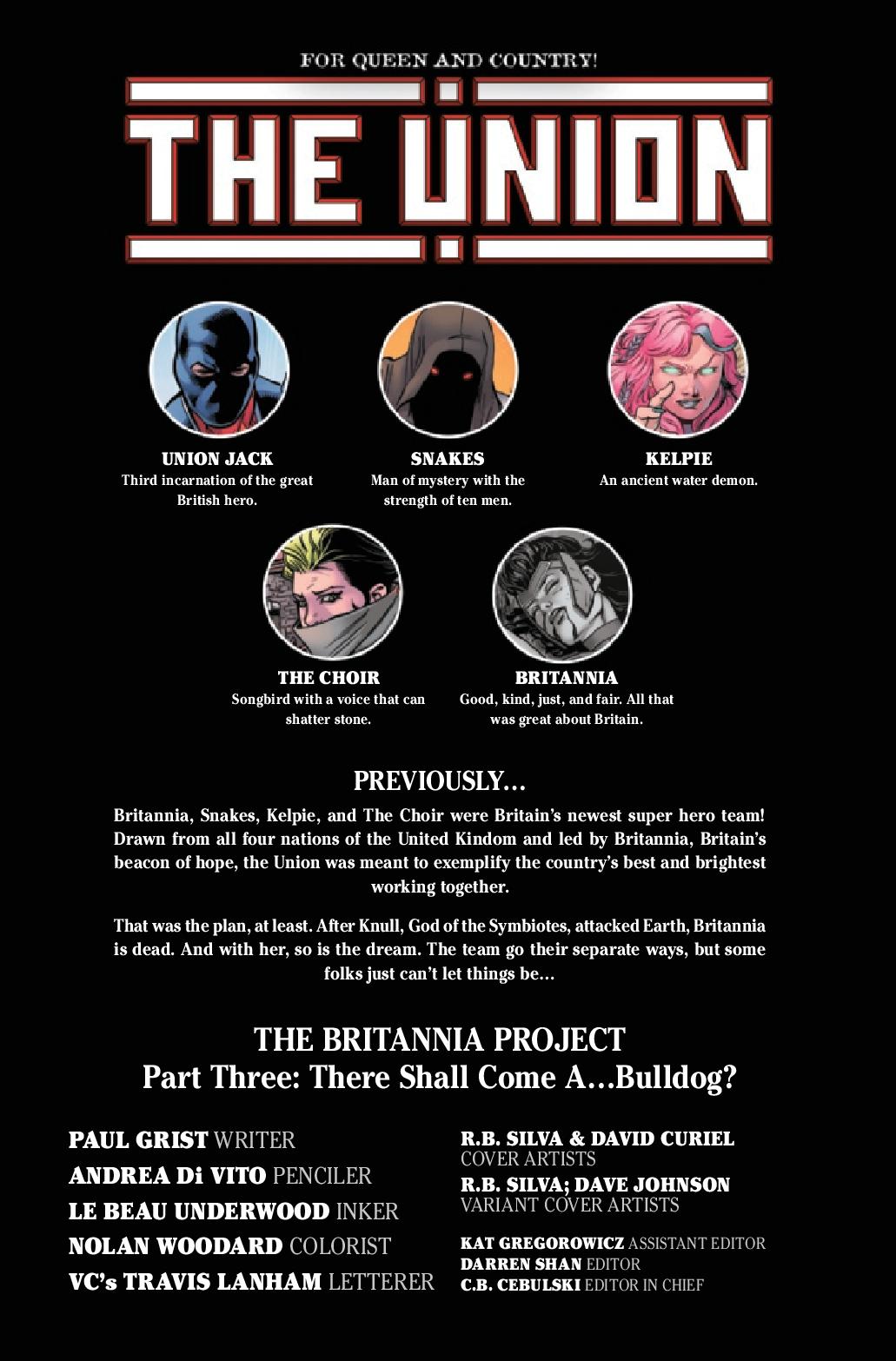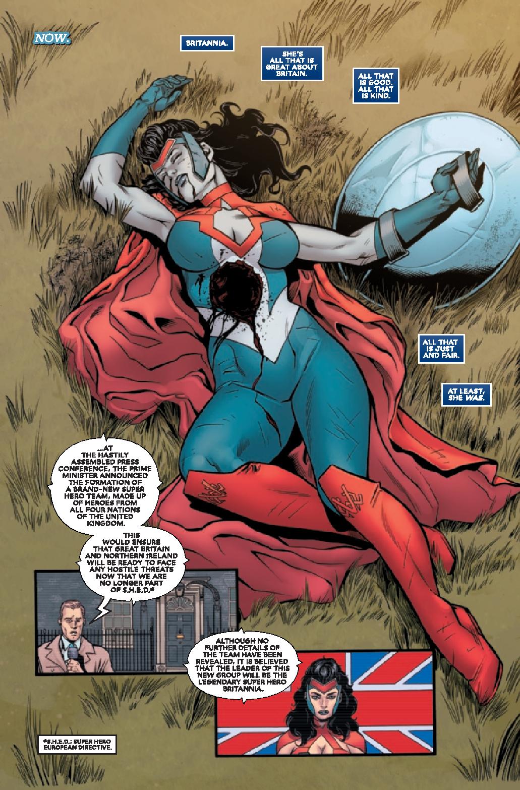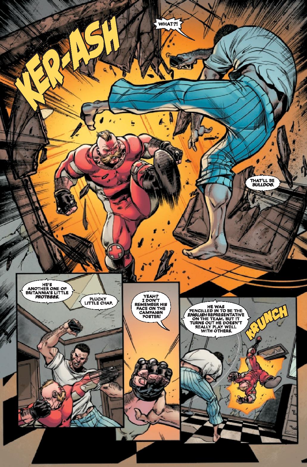 I’m a big Anglophile and was really looking forward to a new team of British Marvel heroes in The Union #1, but boy, was I disappointed. There are the seeds of some good ideas in the book with Grist and Di Vito establishing from the get-go that the team is a big media stunt complete with making sure that England, Wales, Northern Ireland, and Scotland are each represented by a team member. They also establish a media pecking order with everyone wanting to speak to Britannia, and Union Jack, who has appeared in comics for the past four decades and even had his own series several times, getting out and out shooed by the breakfast TV host parodies, Phil and Suzanne. It’s kind of funny because Union Jack is really the only character in the book with any kind of personality even if his narrative captions are pretty basic commentary on being a hero for a long time (Yay sliding timelines!) and the legacy of British imperialism. The other team members, Snakes, Kelpie, and The Choir also get to showcase their unique powers and be generally sassy towards their government handlers. This sounds like a superhero book, I could get into, like Justice League International with a UK flavor.