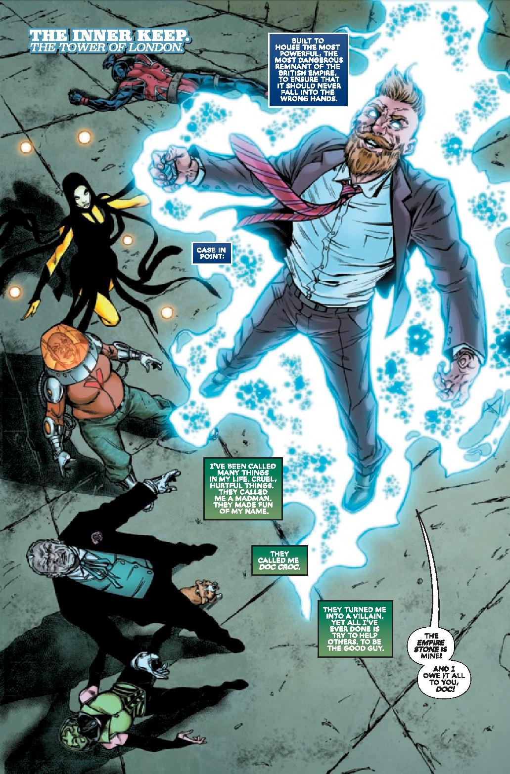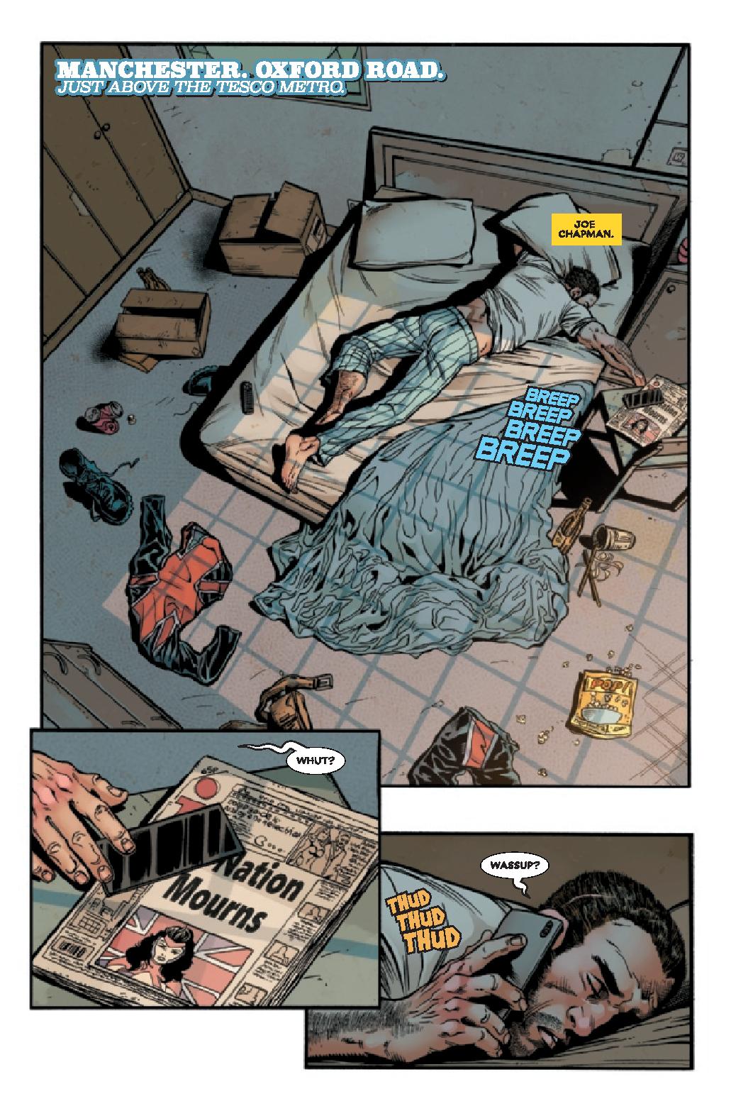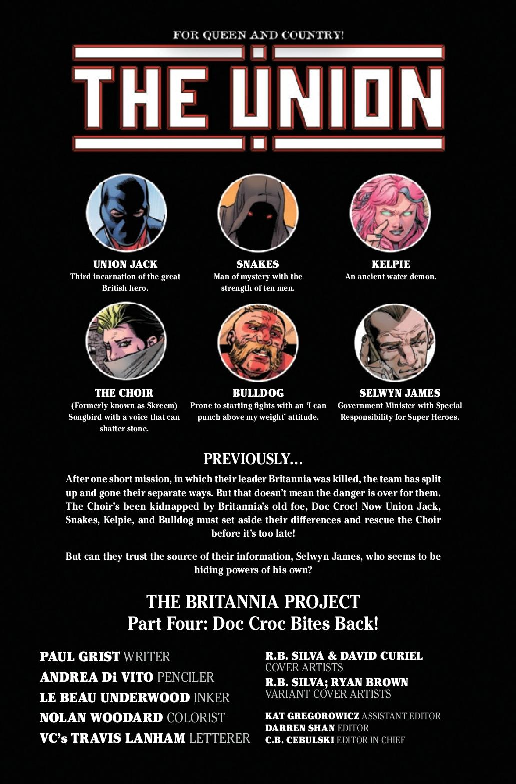 I’m a big Anglophile and was really looking forward to a new team of British Marvel heroes in The Union #1, but boy, was I disappointed. There are the seeds of some good ideas in the book with Grist and Di Vito establishing from the get-go that the team is a big media stunt complete with making sure that England, Wales, Northern Ireland, and Scotland are each represented by a team member. They also establish a media pecking order with everyone wanting to speak to Britannia, and Union Jack, who has appeared in comics for the past four decades and even had his own series several times, getting out and out shooed by the breakfast TV host parodies, Phil and Suzanne. It’s kind of funny because Union Jack is really the only character in the book with any kind of personality even if his narrative captions are pretty basic commentary on being a hero for a long time (Yay sliding timelines!) and the legacy of British imperialism. The other team members, Snakes, Kelpie, and The Choir also get to showcase their unique powers and be generally sassy towards their government handlers. This sounds like a superhero book, I could get into, like Justice League International with a UK flavor.