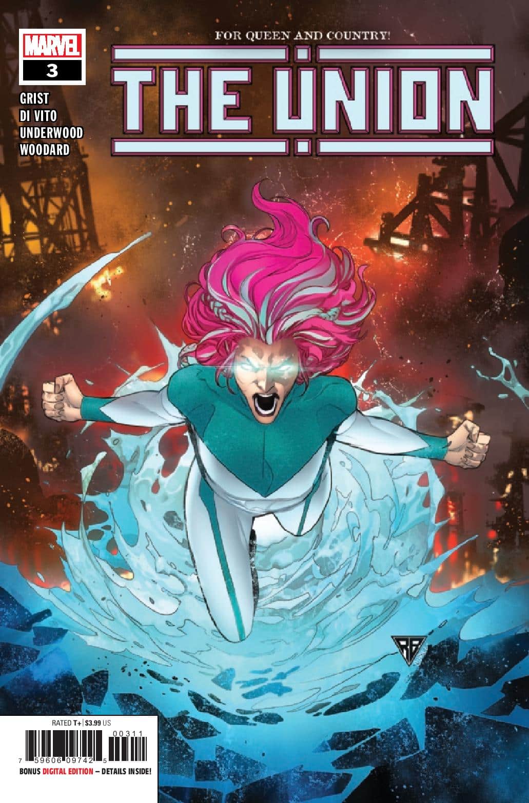 I was familiar with Paul Grist’s work from his work with Grant Morrison on the underrated (And, at the time, highly controversial) 1989 British indie comic St. Swithin’s Day where a disaffected youngster sets out to assassinate Margaret Thatcher. With the exception of the first page that is both written and drawn by Grist in a cheeky cartoonish style, The Union #1 lacks this book’s satirical edge and dark humor and introduces a fairly generic team of UK-themed superheroes to fight some fairly generic symbiote types connected to the King in Black crossover. The visuals from Andrea Di Vito, Drew Geraci, Le Beau Underwood, and Nolan Woodard are decent and have some decent energy any of The Union members use their abilities like Kelpie masquerading as a puddle in a training session against British soldiers. I also liked the recycled Phonogram: Rue Britannia plot point though.