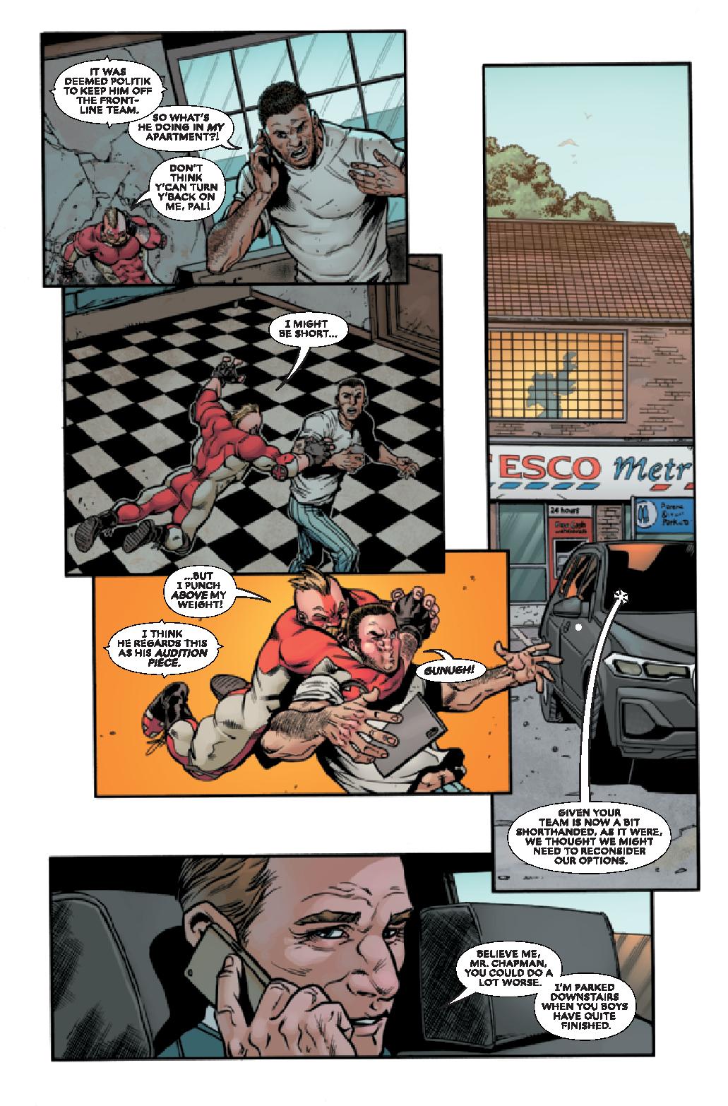 However, character development and the dynamic between The Union, the British government, and corporate sponsor Steve Darwin is all thrown aside for an editorially mandated King in Black crossover that will last all five issues of the miniseries. Paul Grist and Andrea Di Vito really get into generic superhero team-up beats complete with hapless bystanders falling under some form of mind ,er, symbiote control and a telegraphed taking out of a main character before you have a chance to really get to know them (Again, think Phonogram.). There’s also the ol’ team rallying together in a big team pose instead of a cliffhanger that makes me want to pick up the second issue. (I will because I’m a softie for British superheroes, and with his reputation, Grist deserves another chance.)
