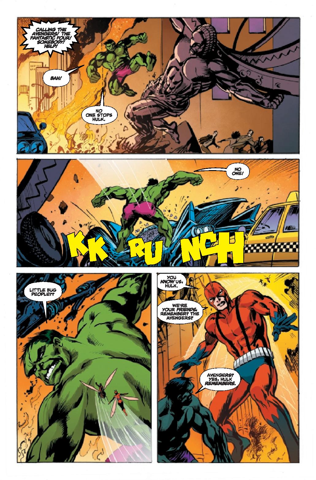 Avengers: War Across Time #1 has Kang again attempting to take over this period’s Earth to fuel his forces and to do that he must stop the Avengers. He uses a robotic Hulk to attack them, upping his plan from the classic Avengers story this spins out of. Yes, a lot of the comic is a drawn out fight, but it’s down in a way that plays off the classic visuals and moments. Aunt May wishes her nephew Peter was there to protect here with a wink and a nod. Peter himself misses Bettie Brant and the Avengers as he approaches a newspaper stand. It’s small moments, but it’s moments that make the comic feel like it’s part of the larger world of the time.