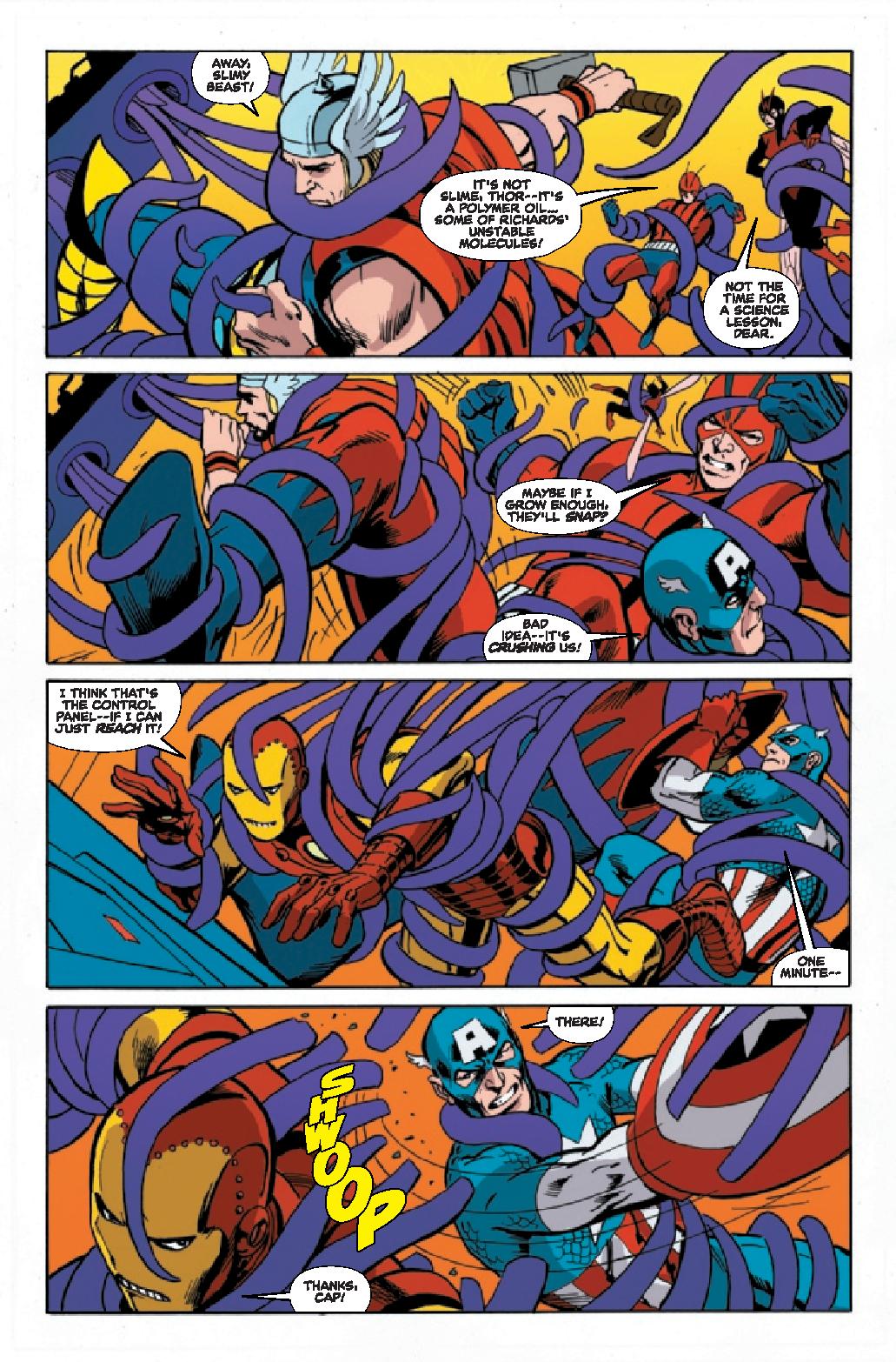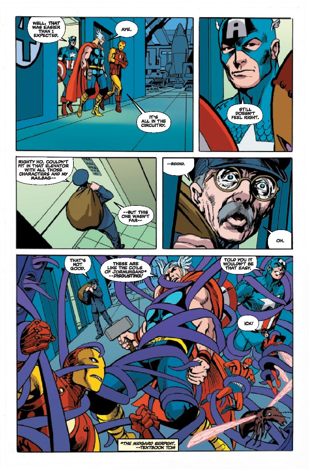 Alan Davis art is solid adding to the feel of the story. With color by Rachelle Rosenberg and lettering by Cory Petit, the comic’s style looks like it could have been of the time. The character designs, the panel layouts, the composition of the images capture what I think of when I think of those early Avengers adventures. The art team eschews a modern update which would take the reader out of the concept of the series.