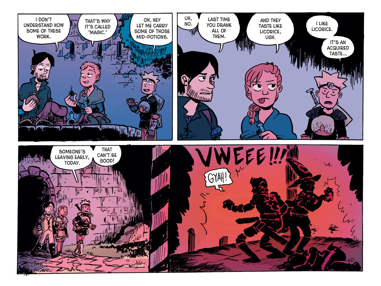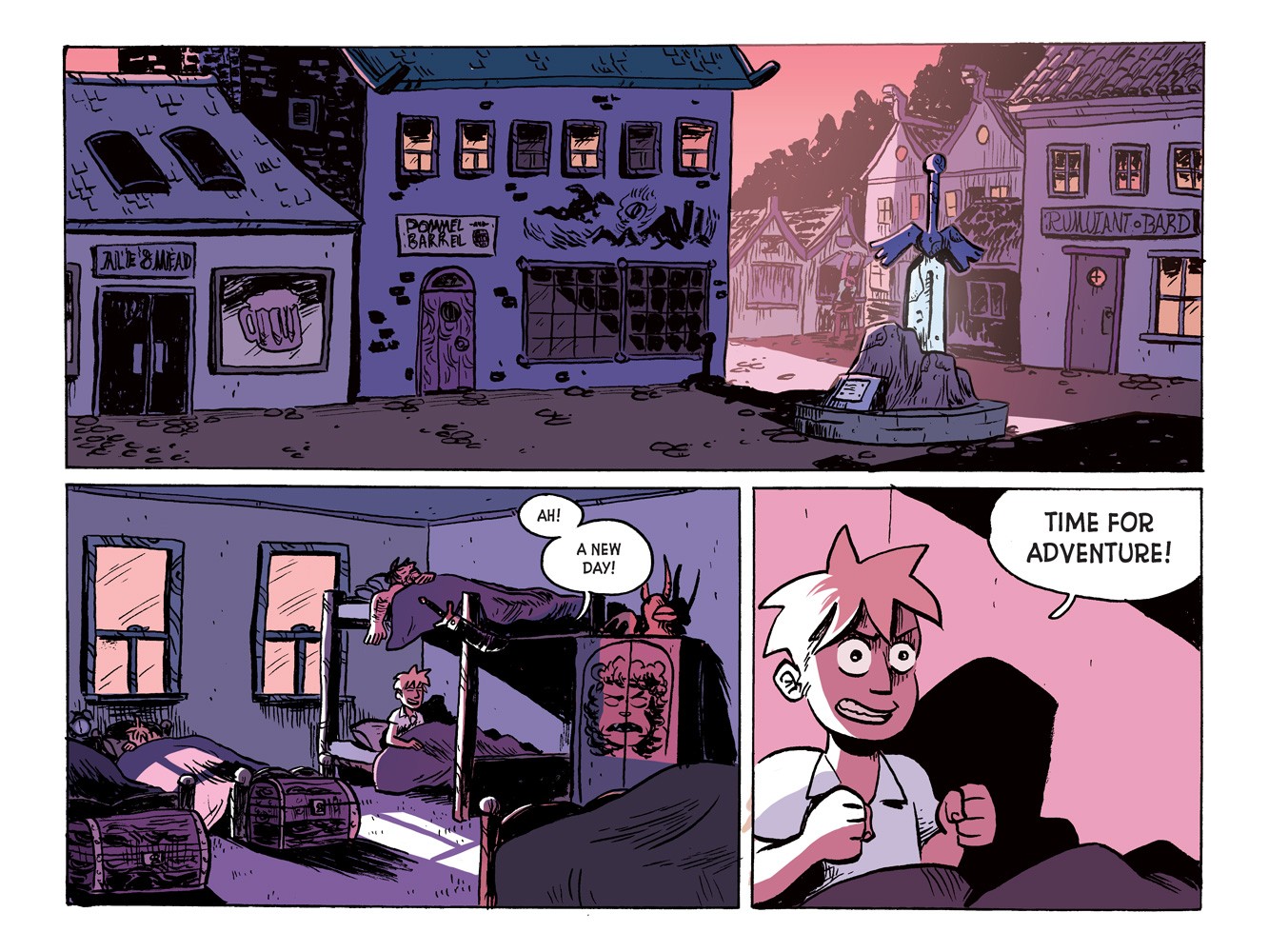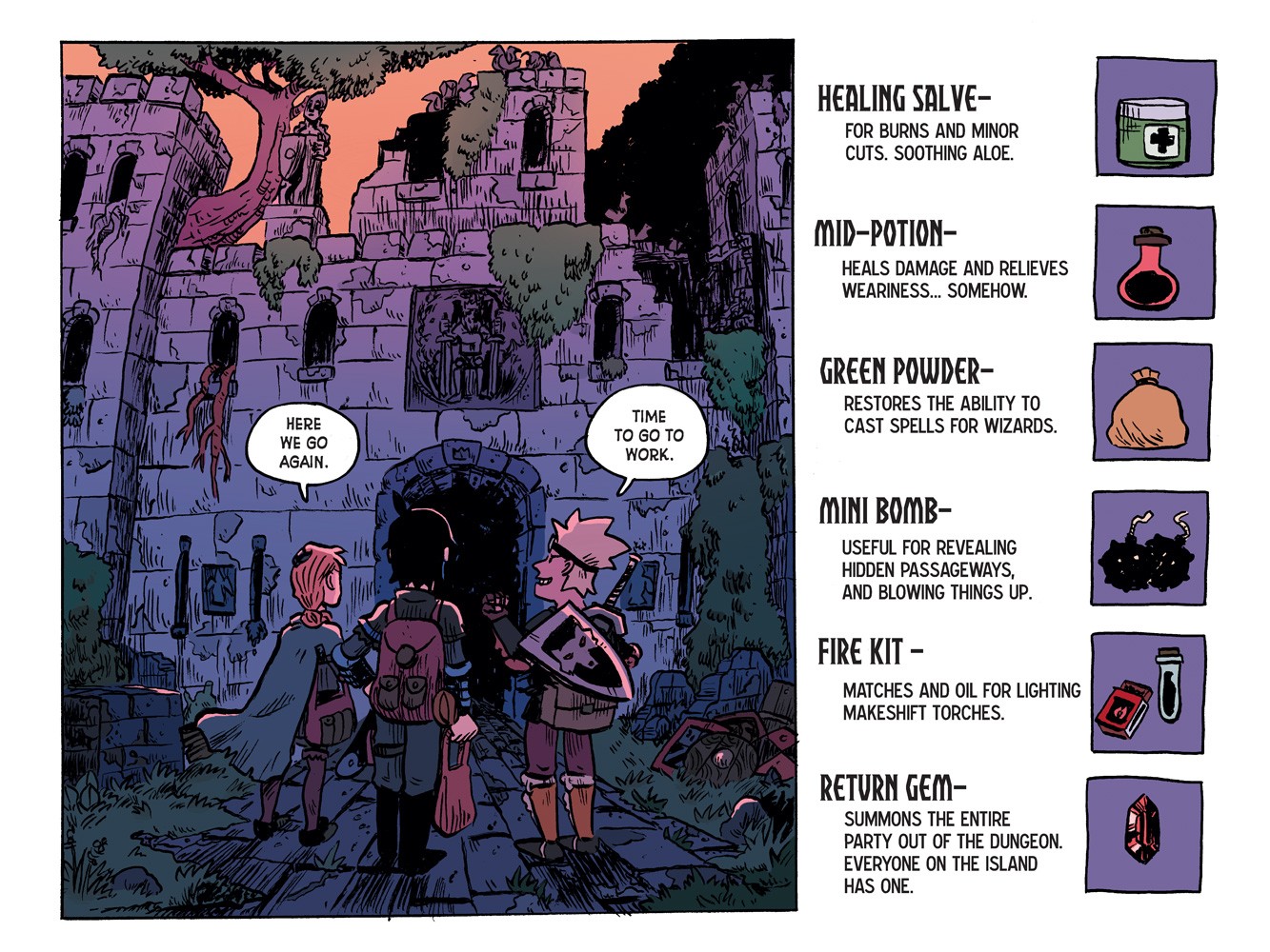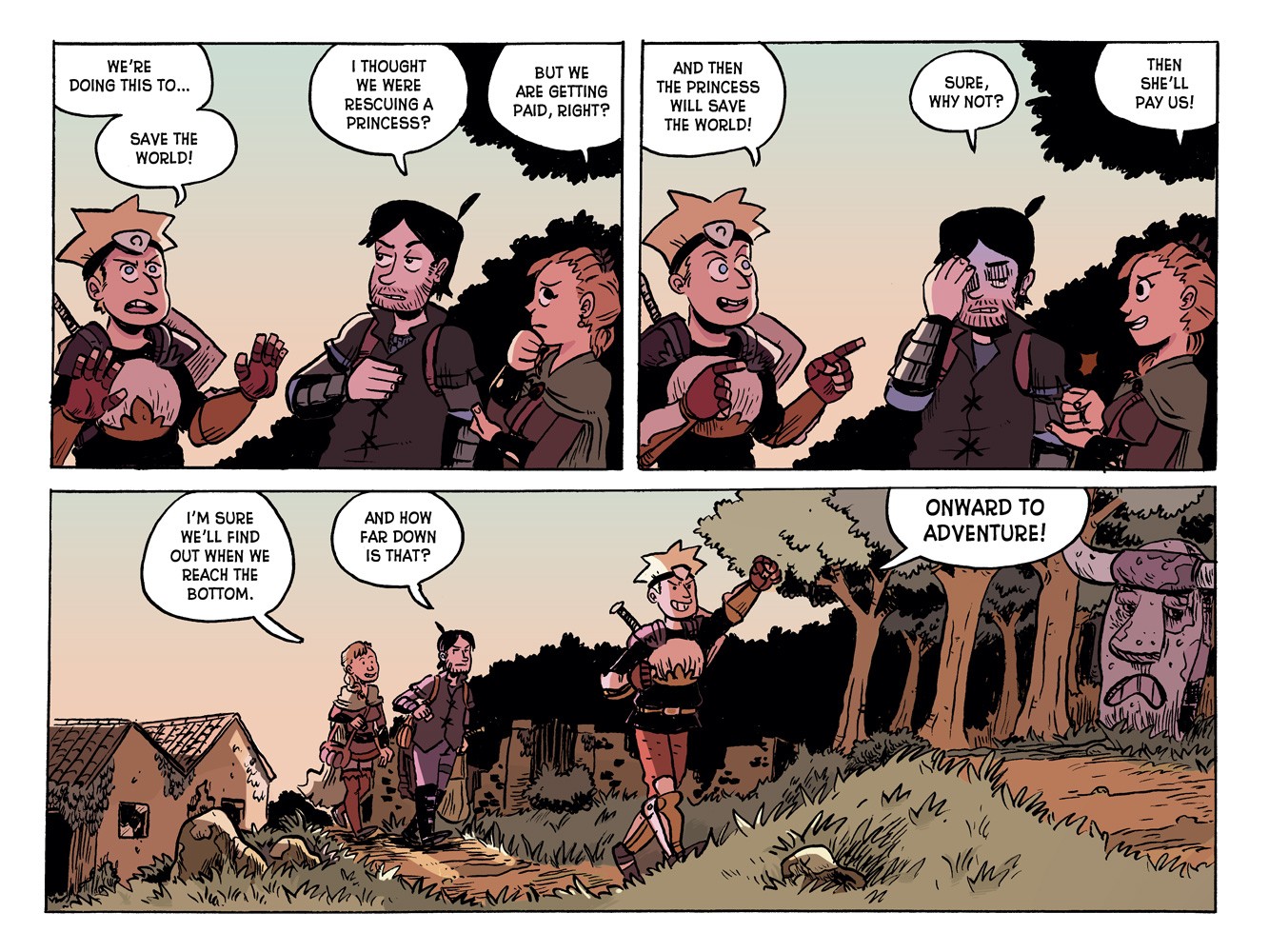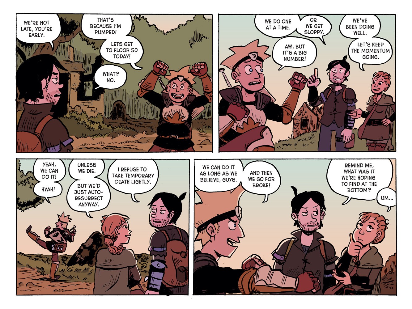 Far across the Western Ocean on a mist-shrouded island guarded by giant sea monsters, heroes come to explore the mysterious dungeons that lie below the surface. None have yet to reach the bottom and return to tell the tale. Each party gathers daily for a new round of potion-making, sword-sharpening, armor-buying, and dungeon-crawling, and after hours of leveling up in dangerous battles with monstrous creatures from the depths, they rest and try again the next day when everything repeats. That is, until one adventurer stops to ask why. Is it endlessly exciting, or simply endless?