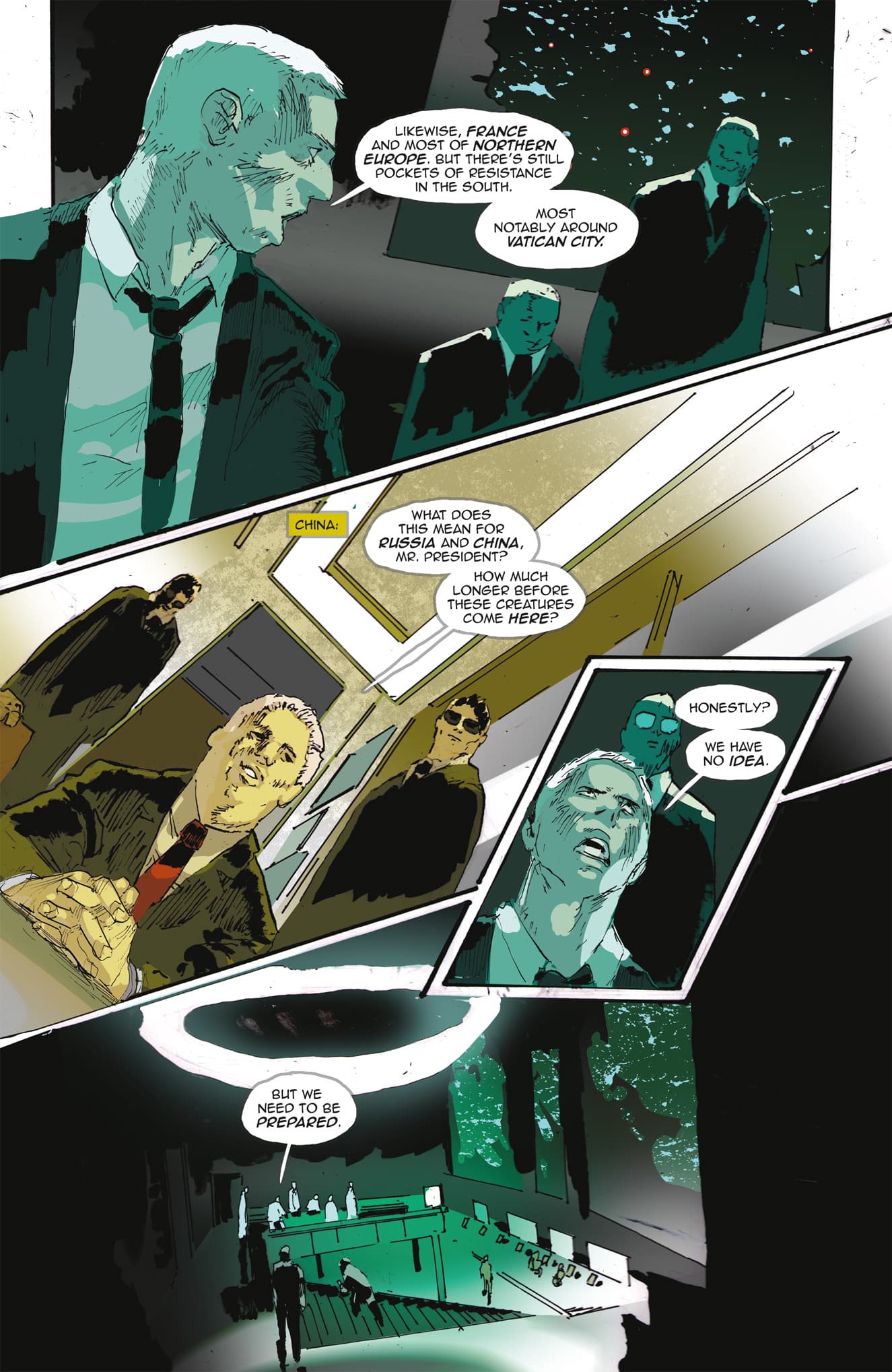 Millar does give us some interesting aspects for things in that these Vampires have figured out how to get around their limitation concerning sunlight but, they face issues with crossing consecrated land apparently. This makes Vatican City a safe zone but there’s a secret underneath that puts it in danger in other ways.