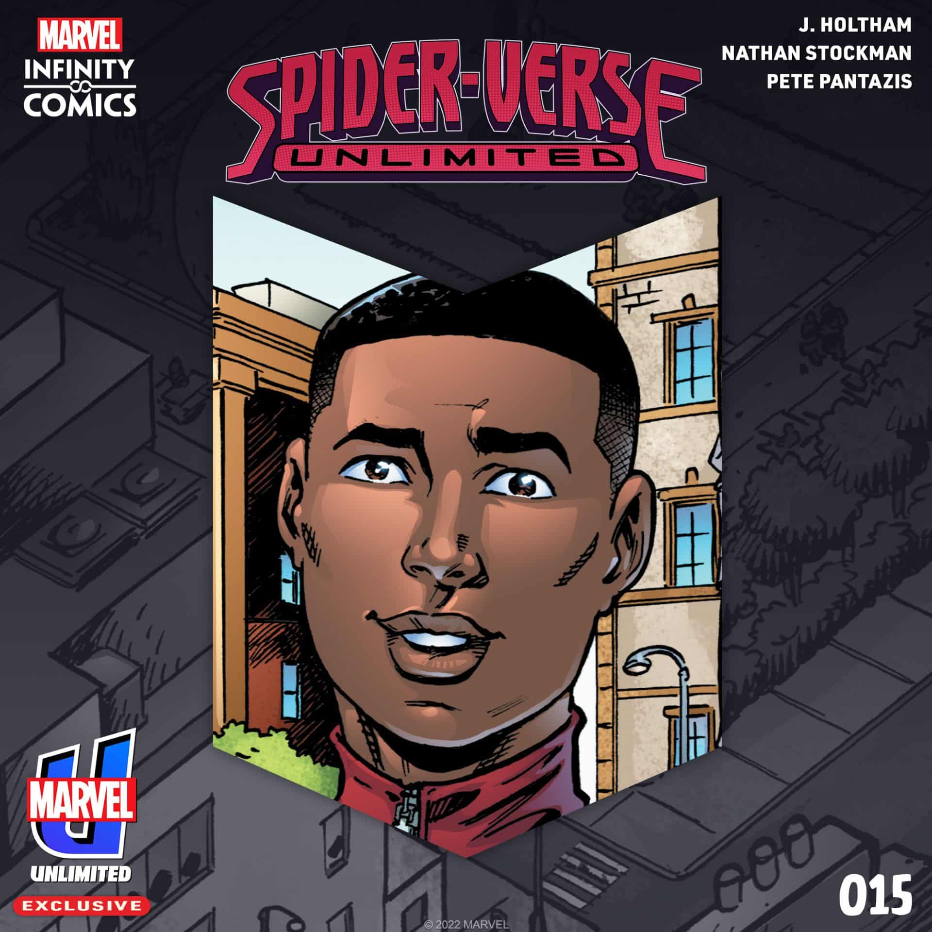 Spider-Verse Unlimited Infinity Comic #15 is written by J. Holtham with art by Nathan Stockman, color by Pete Pantazis, and edited by Ellie Pyle.