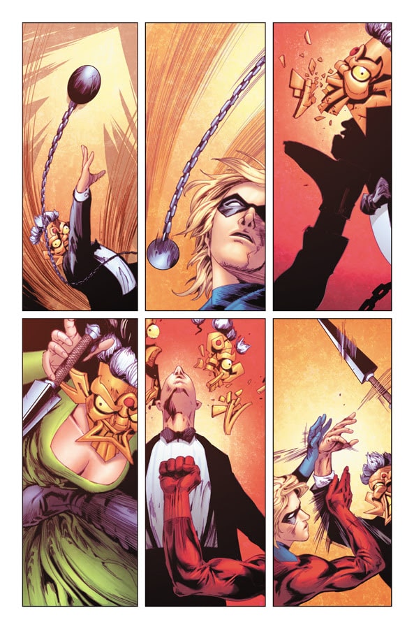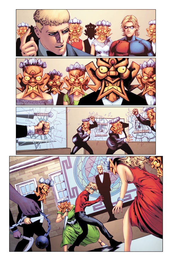 Warrior monks FRED VAN LENTE and JONATHAN LAU channel all their remaining chi into Peter Cannon Thunderbolt #3, immortalized with calligraphic covers by CAT STAGGS, EMANUELE ERCOLANI, and DANIEL SCALISI, as well as an historic Icon image from ALEX ROSS!