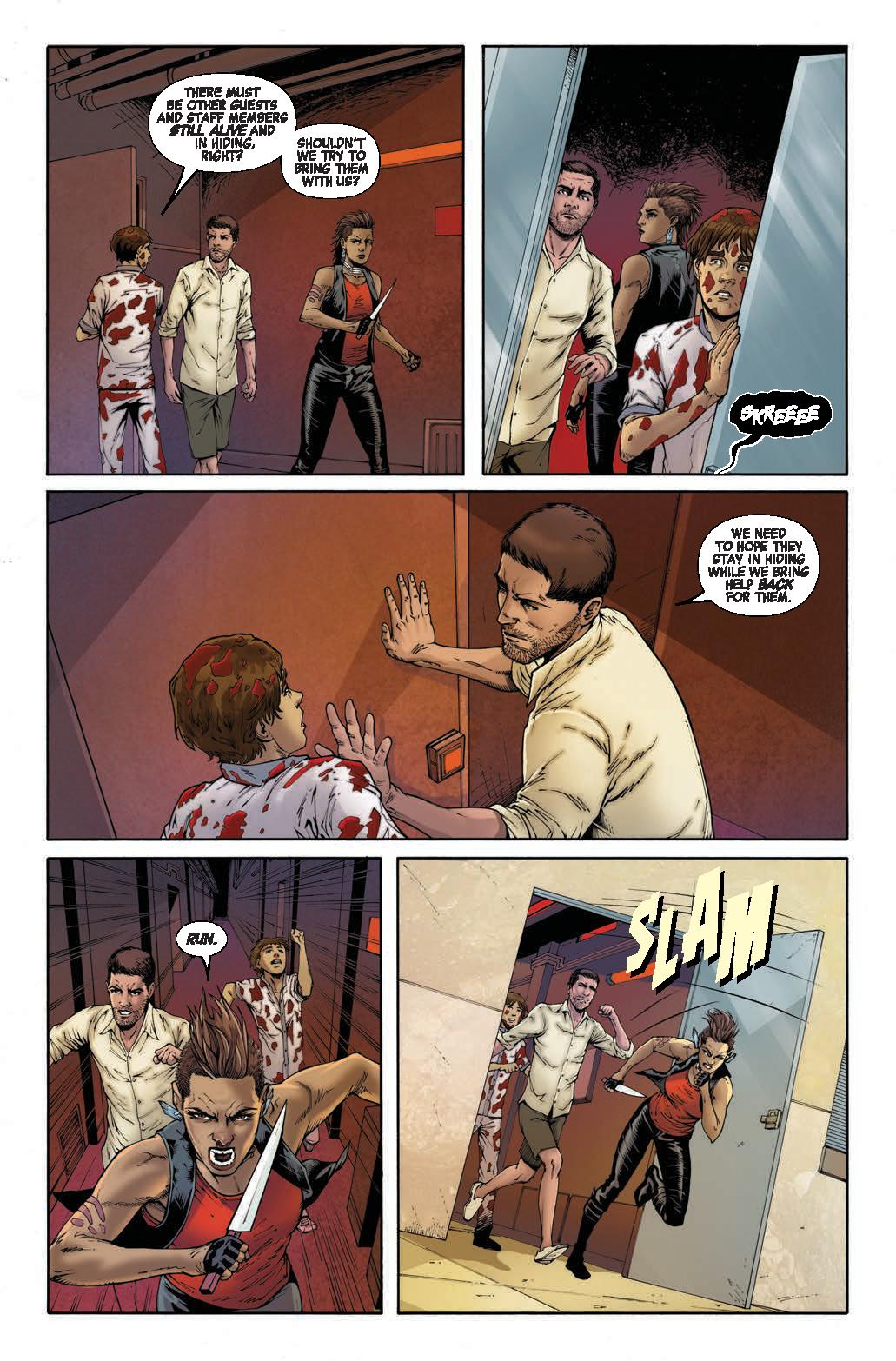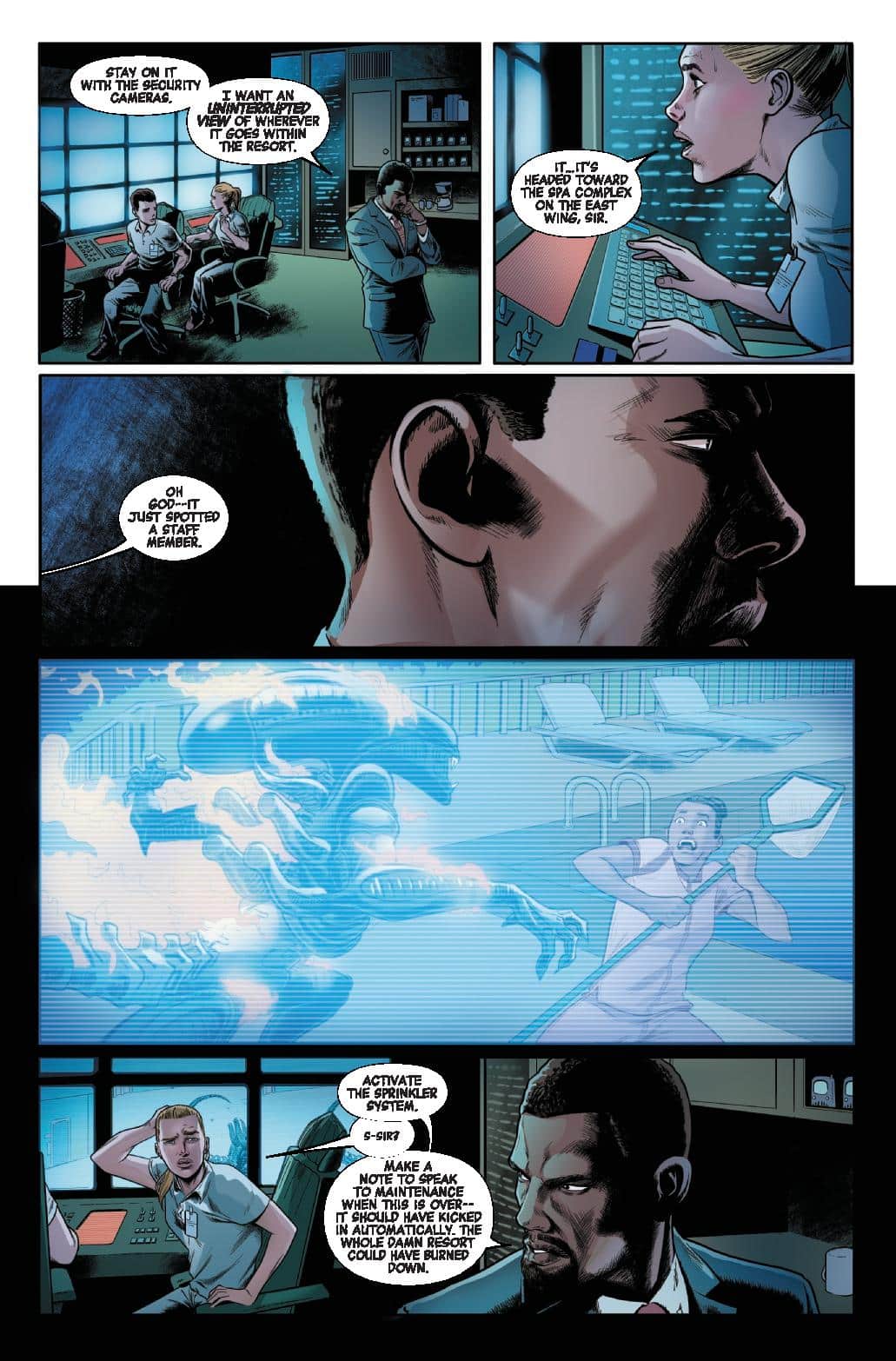 Written by Steve Foxe, Alien Paradiso #1 is an interesting start to the latest series featuring the xenomorph threat. The story involves a criminal deal gone wrong as one involves has been infected by the xenomorphs unleashing the deadly hunters on the vacation spot. Also present are two Colonial Marshals, there undercover to gather intel on a crime deal. We shouldn’t forget the guests and staff there too. All of it creates an unpredictable combo that should be entertaining terror as the alien threat spreads.