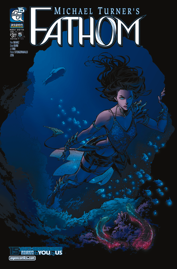 The publisher has announced they will be offering Fathom #1 Retailer Special Edition variant covers with no restrictions on order quantity by creator Michael Turner and superstar artist Siya Oum. This is the first time Aspen has provided retailers the chance to order their incentive variants with no restrictions and encourages fans to check with their local comic book store to pre-order.