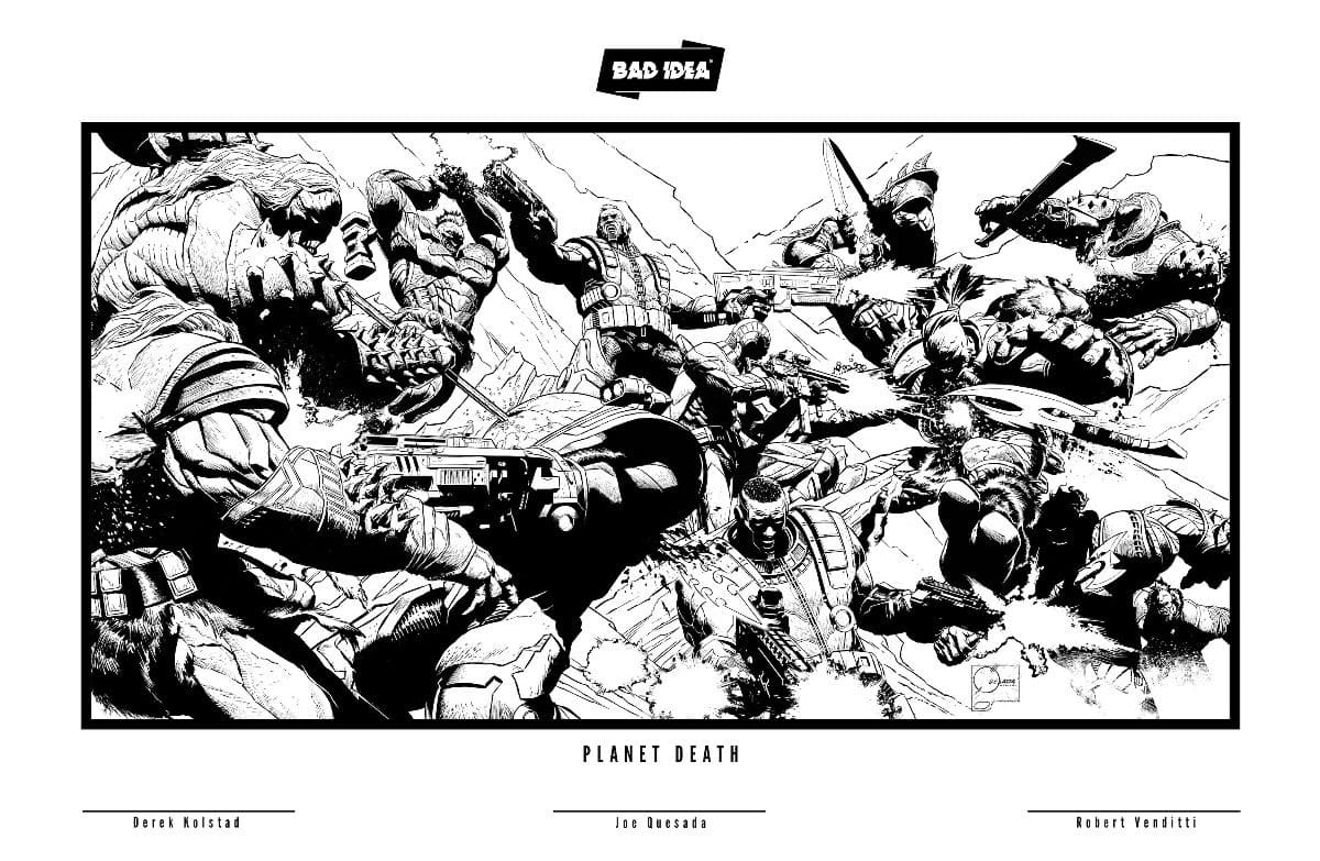 PLANET DEATH is the massive sci-fi comic book event from blockbuster screenwriter Derek Kolstad (JOHN WICK motion picture franchise), New York Times best-selling writer Robert Venditti (SUPERMAN ‘78, GREEN LANTERN), visionary artist Tomás Giorello (STAR WARS, CONAN) and ten-time Eisner Award-winner Dave Stewart.