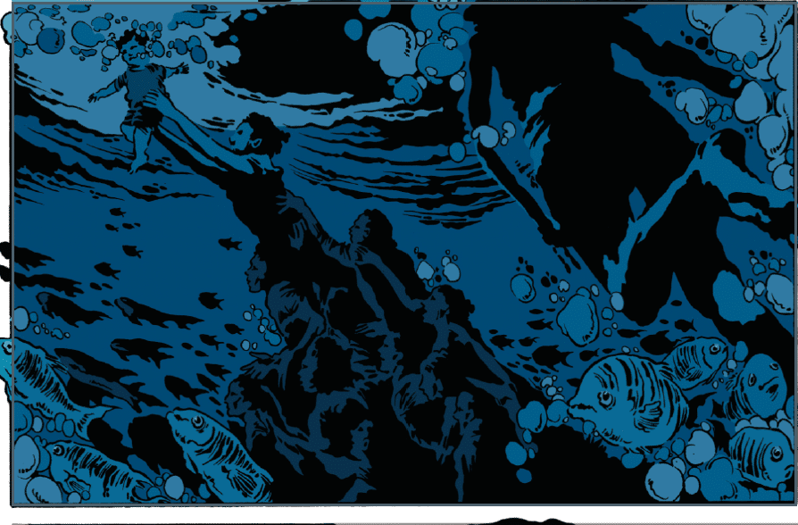 It’s a shame because the comic itself is amazing, a work of goddamn art I would even argue. It’s a wordless tale about a drowning baby that is lifted to the safety of the surface by the spirits of dead migrants. The visuals are profound in both their beauty and melancholy. I had quite the emotional reaction, tears of both grief and joy running down my facee.