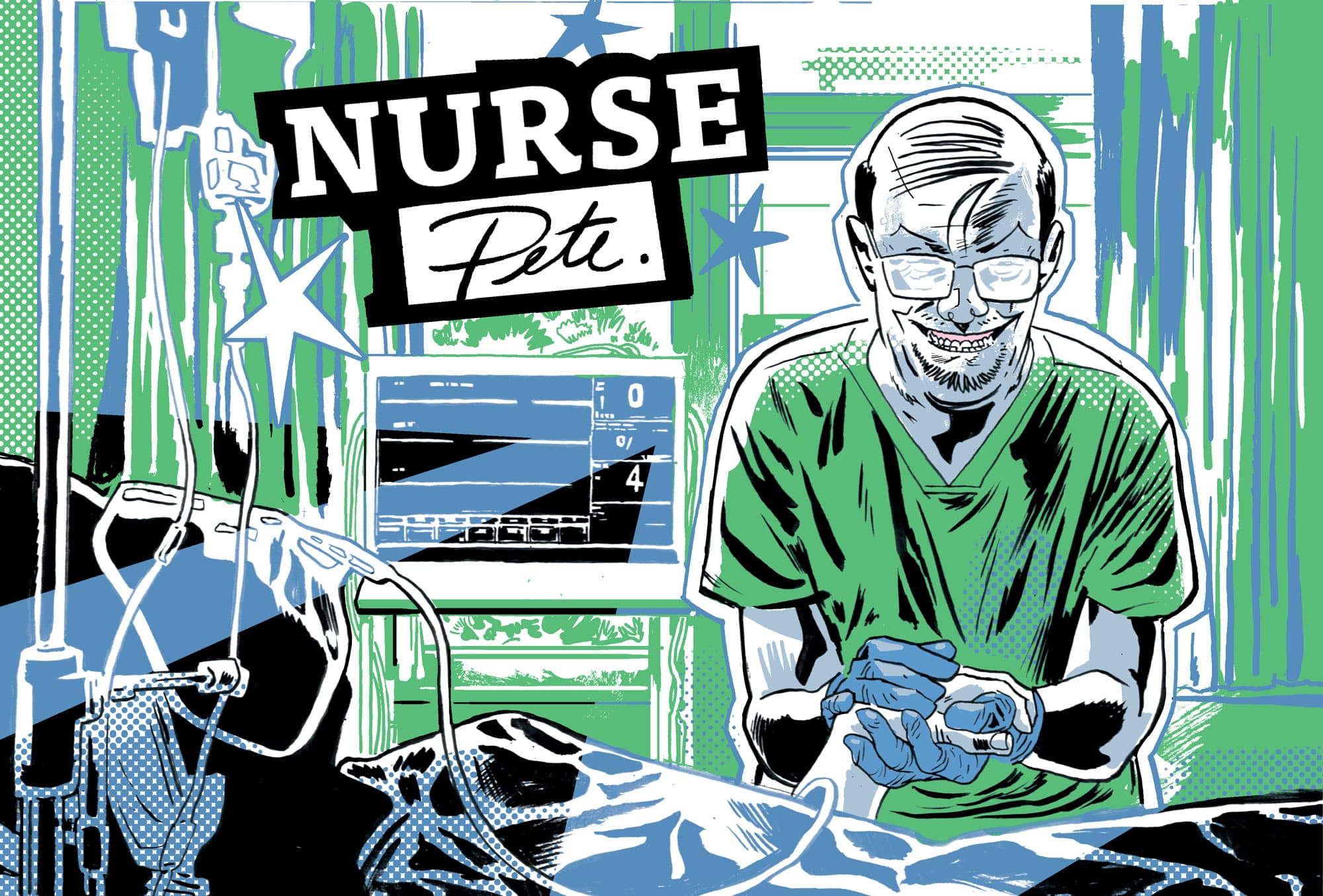 NURSE PETE: VIRGINIA selects NURSE PETE to wield POISON. Kill Count: ???. Height: 5′ 6″. No one would guess that the unassuming, schlubby NURSE PETE had a body count approaching three figures, and that’s just how he likes it. A compulsive killer who endlessly tweaks his deadly cocktails of paralyzing narcotics and tests them on patients around the country, NURSE PETE is usually content to slip from hospital to nursing home to pediatric ward, changing identities just in time to avoid being noticed. But the sum offered to him for joining this game would pay for oh so many tantalizing new chemical components…