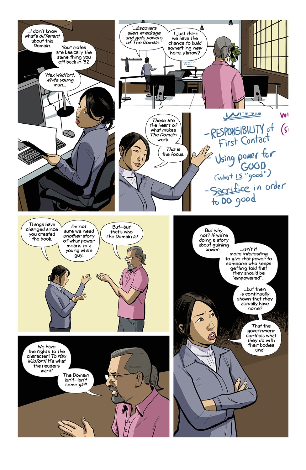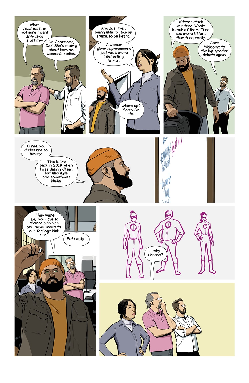 I know that Midnight Radio technically came out in 2019, but it got a special edition remaster from writer/artist Iolanda Zanfardino so it’s eligible for my “Favorite Comics of 2024” list. Using a distinct color palette for each protagonist, Midnight Radio follows the lives of a diverse cast of characters brough together by a mysterious radio message urging them to be their own authentic selves. There’s a plotline with a healthcare company being responsible for the deaths of many people that was painfully relevant last year, and Zanfardino explores even more social issues like racism, xenophobia, social media addiction, and violence against queer people throughout her story. However, the main draw of Midnight Radio for me was the characters breaking off the shackles of corporate jobs, corrupt cops, unwelcoming families, and societal pressure and finding fulfillment through a variety of types of art, including indie games, music, and more!