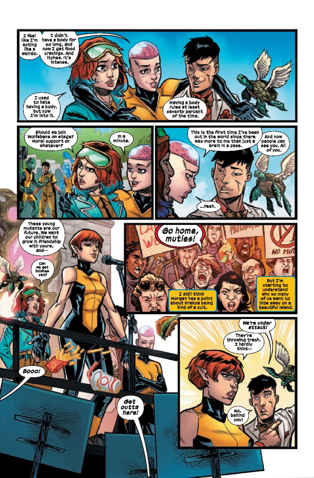 The U-Men have the New Mutants surrounded! Will the mutant youngsters gather the strength and courage to fight the good fight and power their way through a seemingly unstoppable force? Or give into their fears and insecurities? And Sublime has his sights set on Escapade, determined to procure her powers by any means possible. With the clock close to running out before Morgan’s foretold doom, the pressure is on Shela to save her best friend while avoiding Sublime’s clutches. Find out the fate of these young heroes in Charlie Jane Anders and Alberto Alburquerque’s explosive conclusion to this three-issue arc!
