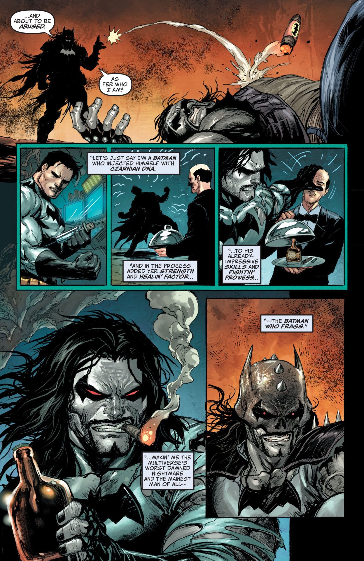 The second part by Becky Cloonan, artist Rags Morales, colorist Andrew Dalhouse, and letterer Rob Leigh is titled “What the Frag is a Death Metal Anyway!?“. Blackhawk Island and Hawkman are at the center as Lobo tracks down the Death Metal. Again, the story devolves into a series of events than narrative as Lobo must tussle with Black Monday and then convince Hawkman to turn over the metal. An attack from the air by The Batman Who Frags feels out of the blue and not explained enough as much of what happens. It, just happens. Why would Hawkman trust Lobo? Why wouldn’t Hawkman use the power of the Death Metal himself? There are so many questions out there that just kills the narrative if one takes a moment to think about it at all.
