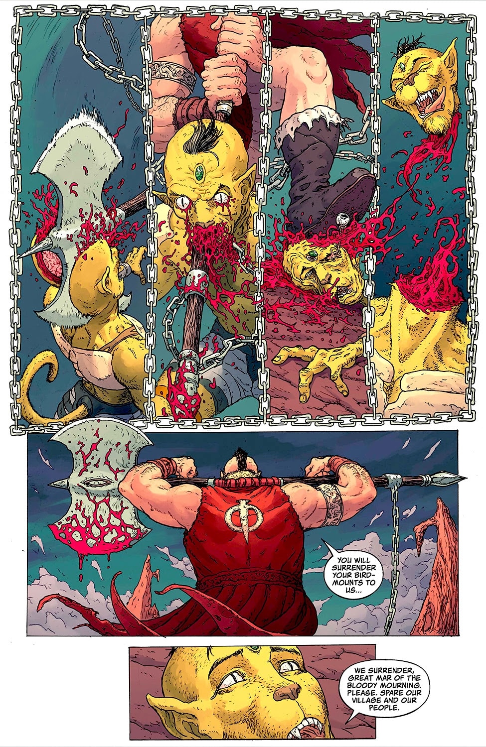 IT ALL ENDS HERE! Cloud City is burning. The Bloody Mourners have smashed through the city’s defenses, leaving Kral and his crew bruised, battered, and hanging on for dear life. Kid is down, maybe dead. And Franque’s magic was powerless to save her. Ora has fallen, Alfabel’s cornered, and The Wrapped Assassin is in chains. With Maw standing at the vault door, ready to claim the city’s mythic treasure, Kral is the one man that stands in his way. But can a former fiend save the city from sinking into oblivion? Find out in the bone-crushing battle that’s been years in the making!