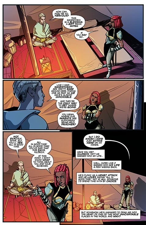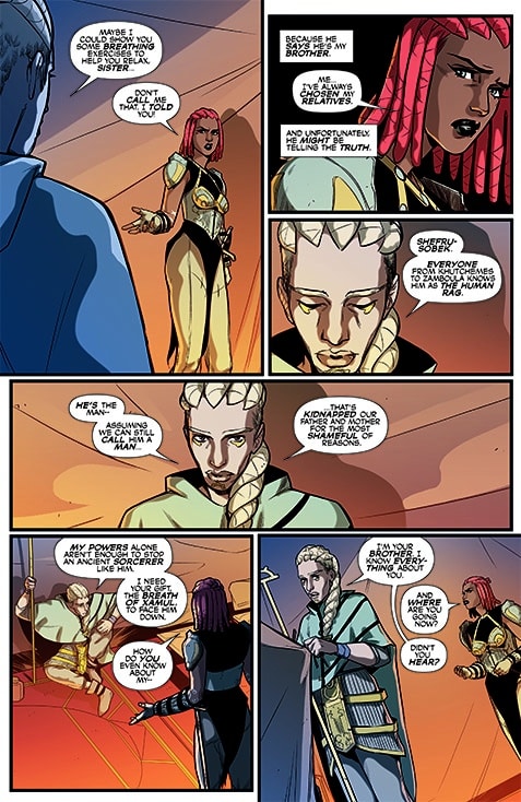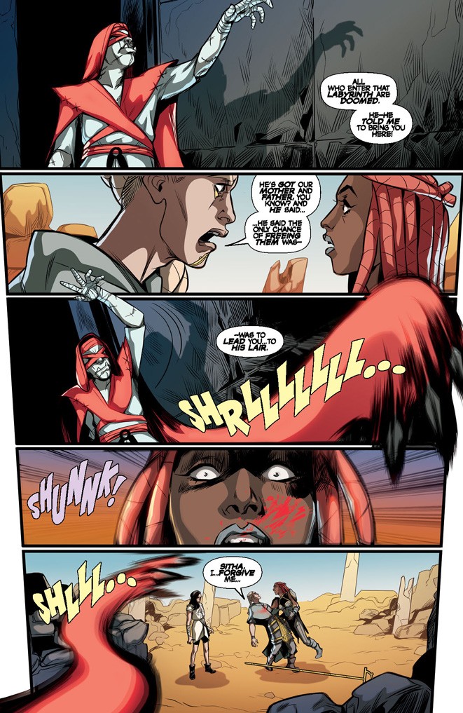 Once possessed by Xamul, the spirit of the flame that possessed her, Sitha the Red has chosen to follow the path of the sword, inspired by the courage of her adopted mother, Red Sonja. Now, ten years have gone by and Sitha is a young bounty hunter, always in pursuit of the most dangerous criminals in the kingdom of Aquilonia. Until, that is, the day that someone returns from her past with a new mission for her – one that borders on suicide! Written and illustrated by comics dream team MIRKA ANDOLFO and VALENTINA PINTI, this collection reprints all four issues of their captivating series.