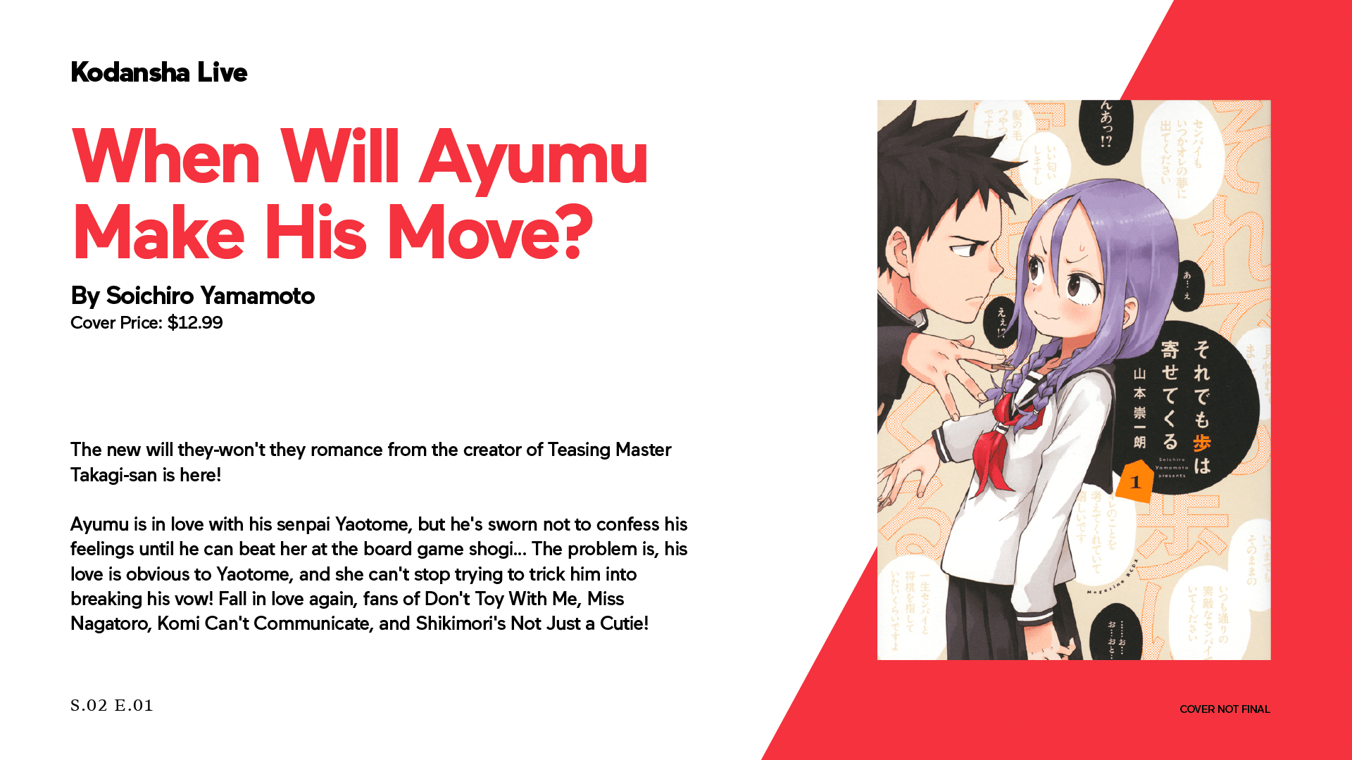 As a child, Hayato promised to marry his first love, Serafi. Fifteen years later, he has become one of the world’s greatest spies, all while never falling for the temptations of enemy agents. A mission to expose rival operatives turns chaotic when Hayato reunites with Serafi, and each realizes the other is a spy. Now the pair must live together, torn between love and duty. The question is…who will break first?