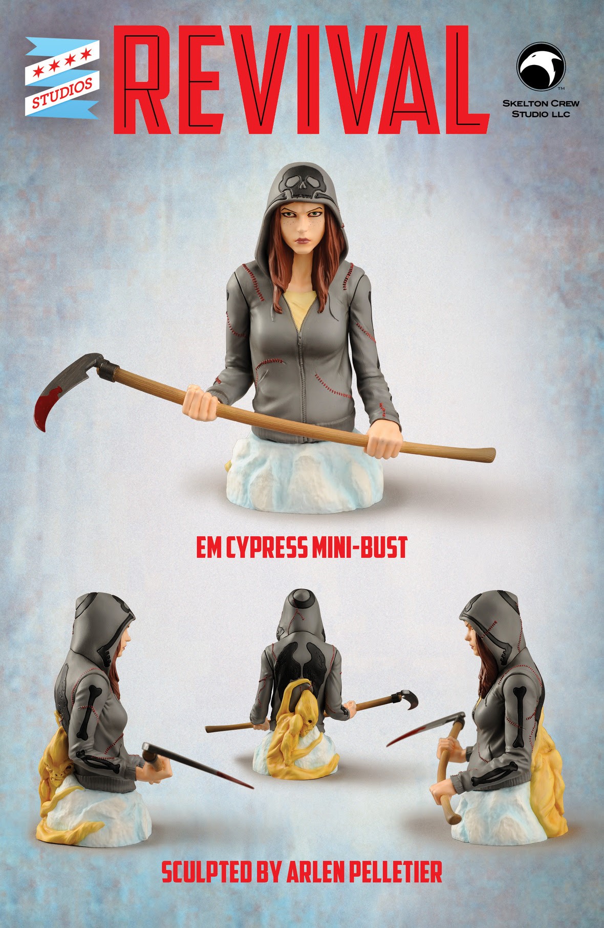 Skelton Crew Studio have announced free shipping in the U.S. for pre-orders placed through January 31 for their Limited Edition Em Cypress “Revival” min-bust and Huck mini-bust.