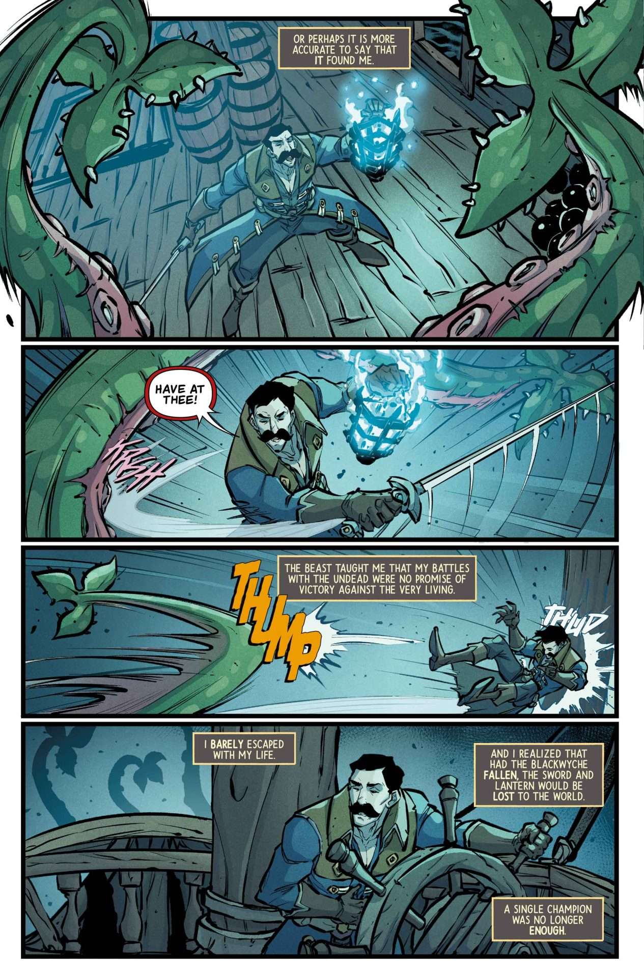 The most noble pirate to have ever sailed the Sea of Thieves, the legendary Arthur Pendragon continues to forge his destiny as the Champion of Souls! After fighting back against the skeleton scourge, Pendragon gains the attention of the mysterious and powerful Madame Olivia, who bestows upon him an ancient artifact that he will carry to the grave – and beyond.