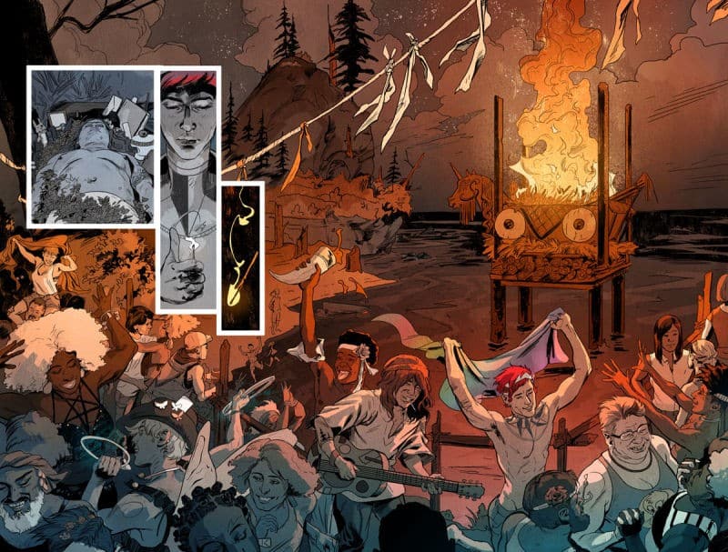 Nick loves pretty boys and loves drawing them. A lot of reason for Indi as a character is because of Nick’s instant affection for him. Nick draws him so beautifully and all the characters so beautifully, which is great too because we have some characters, like Mercy, who are not conventionally beautiful. Mercy is sick. Her appearance is that sh’es clearly dying in public. We first see her because she looks so unnerving and scary. But everything is beautifully rendered for Nick even the scary stuff.