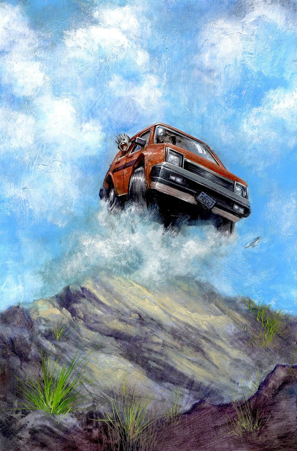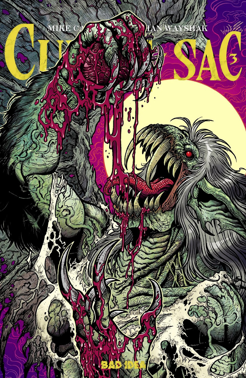 Kentucky colonel and The Walking Dead co-creator Tony Moore and colorist Rico Renzi turn things up a notch in their West Virginia coal country yarn “Fire in the Hole” about a man named Artie, who was the lone survivor of a mine cave-in. Moore’s art style is reminiscent of EC horror comics, and he adds some authentic details like “Barboursville, West Virginia” on some boxes while still telling his story suspensefully. The non-linear plotting is a little jarring initially, but it ends up mirroring Artie’s guilty conscience and makes his comeuppance that much more devilishly satisfying. Tony Moore’s facial expressions are vivid, and his layouts are a hellish maze as Artie tries to run from his terrible actions. But he’s in an EC comic, and there’s no escape from that. My one small quibble with this issue is that the transition from page one to two is a little jarrin,g especially with the inclusion of the title lettering and horror host, but placing the proverbial camera at mid-distance establishes Artie as innocent while the rest of the story reveals his miserable existence as a downright dirty scab. (He looks like one, too.)