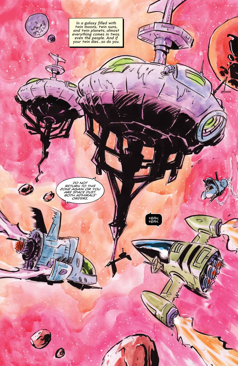 Corollary is a brand new bombastic sci-fi series from writer Adam Rose and artist Robert Ahmad, taking readers to a galaxy filled with twin moons, twin suns, and twin creatures. Corollary delivers double the action and double the drama in stores on April 20, 2022.