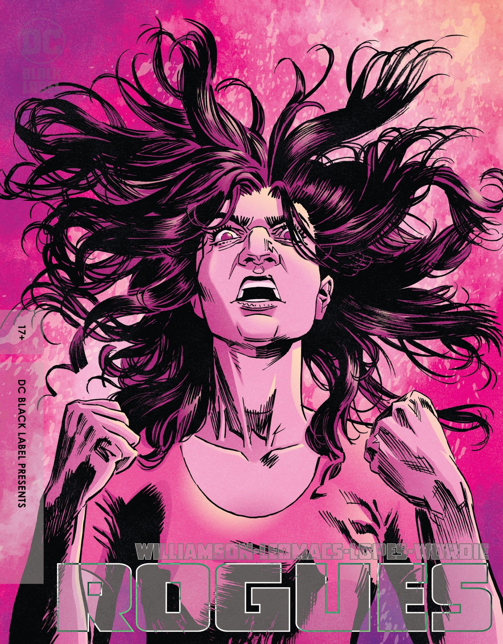 Rogues is definitely structured like an old school heist movie beginning with an extended flashback sequence set during the good ol’ days that foreshadows the job to separate introductory sequences for each crew member complete with nicknames and different art styles. Even if you’re not familiar with Leonard Snart, Lisa Snart (Golden Glider), James Jesse (Trickster), Ben Turner (Bronze Tiger), Frankie Kane (Magenta), Mick Rory (Heatwave), and the surprise seventh crew member, Williamson and Leomacs have their personalities on lock before their first mini-heist. Probably the most effective is Mick’s intro. Unlike the other Rogues, he hasn’t even tried to be respectable and is introduced wreathed in flames burning down a building for insurance money. On the other hand, Magenta is introduced in a pharmacy where she can’t afford the pills to help suppress her magnetic abilities, and Leomacs uses a loose line plus swatches of color from Mat Lopes to show her losing control. The shittiness of health insurance/pharmaceutical companies is as good enough a villain origin as any.