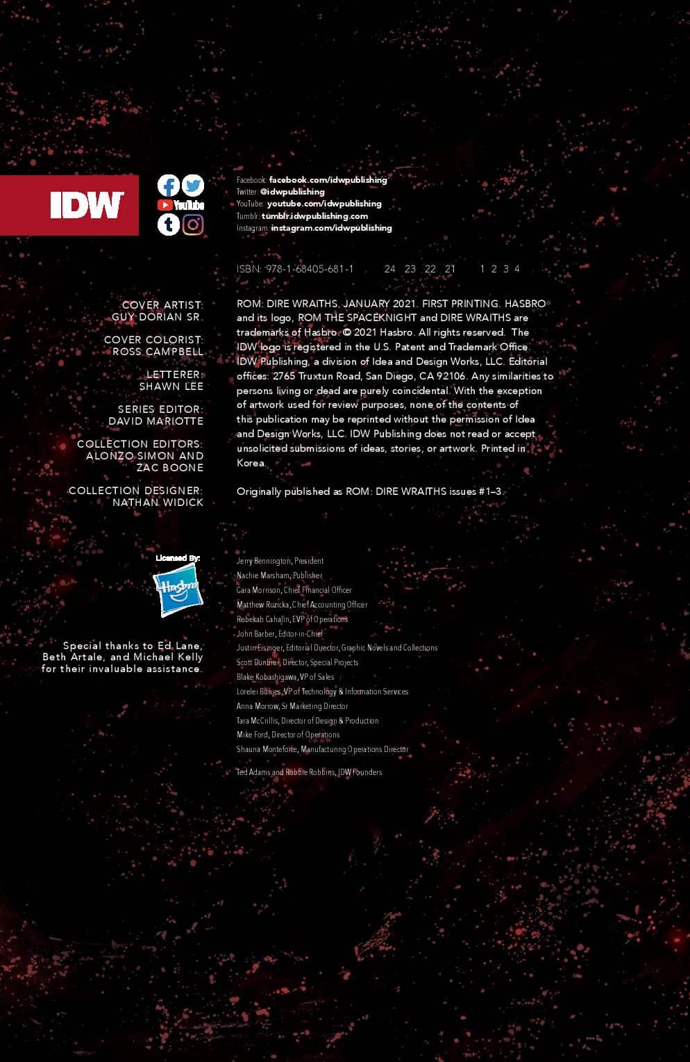 Overall, ROM: Dire Wraiths is a nice story that is an interesting prequel to a well-established hero. The story by Chris Ryall has echoes of Harlan Ellison and Richard Matheson, which is both exciting and scary. The art by the creative team is gorgeous. Altogether, a story that should bring this character a bigger fan base.