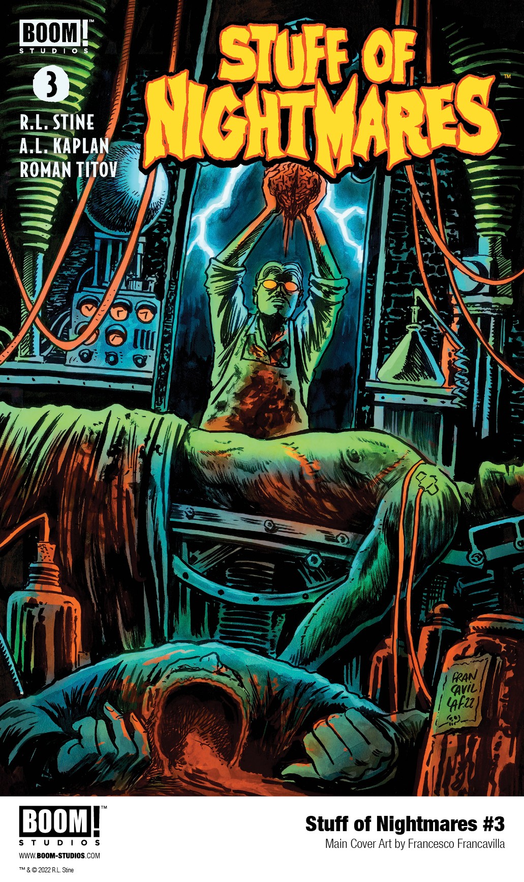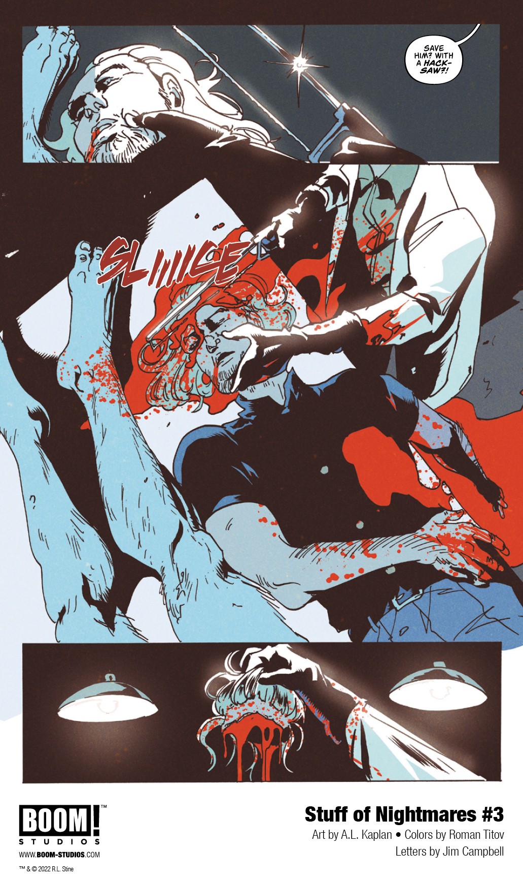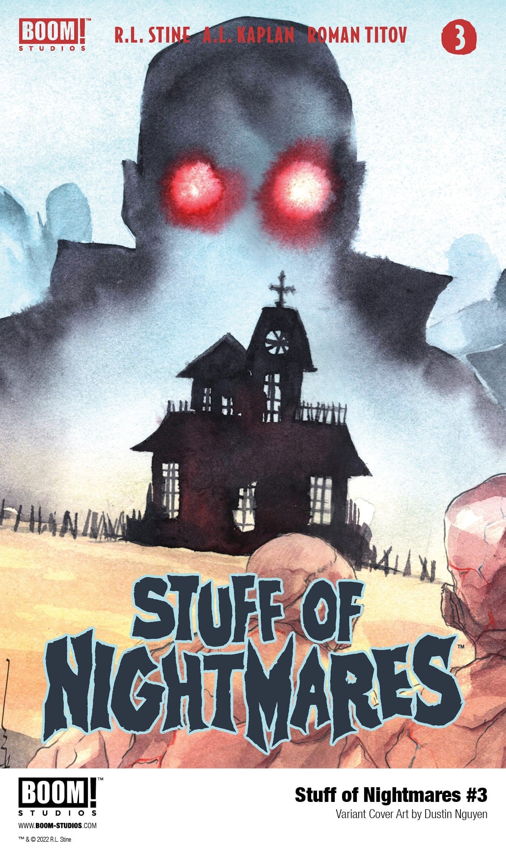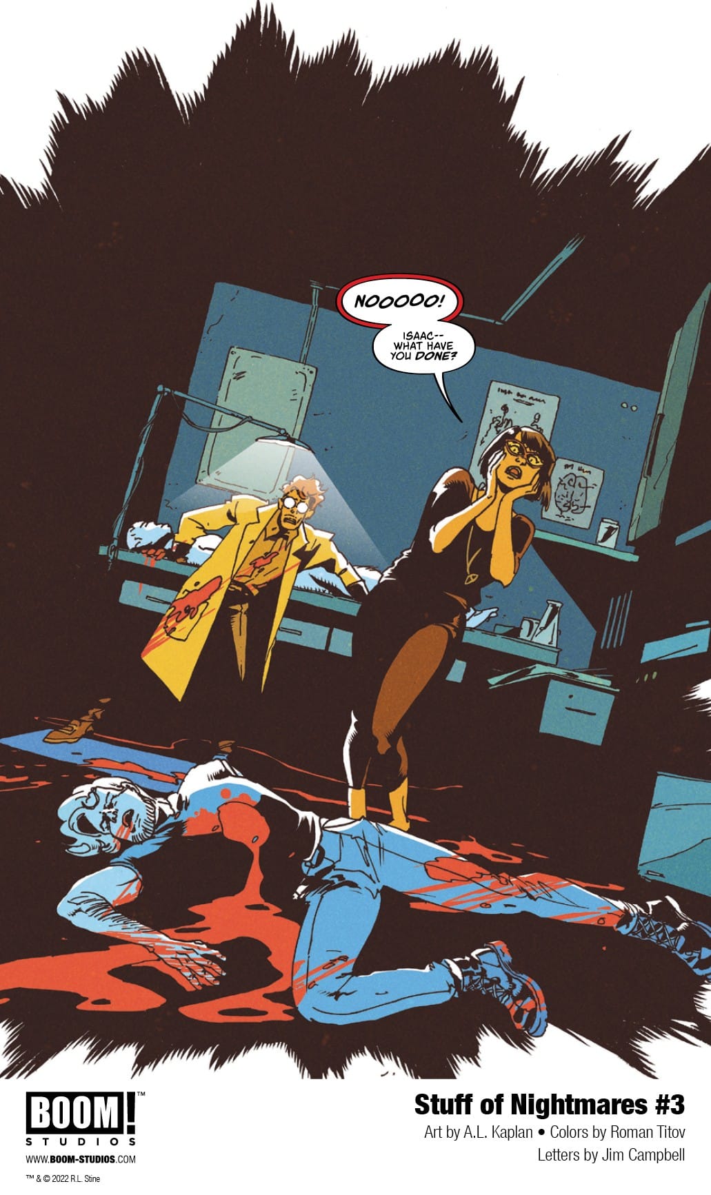 BOOM! Studios has revealed a first look at Stuff of Nightmares #1, the premiere issue of a brand new four-issue limited comic book series from R.L Stine with chilling art by A.L. Kaplan, colors by Roman Titov, and letters by Jim Campbell. Available in September 2022.